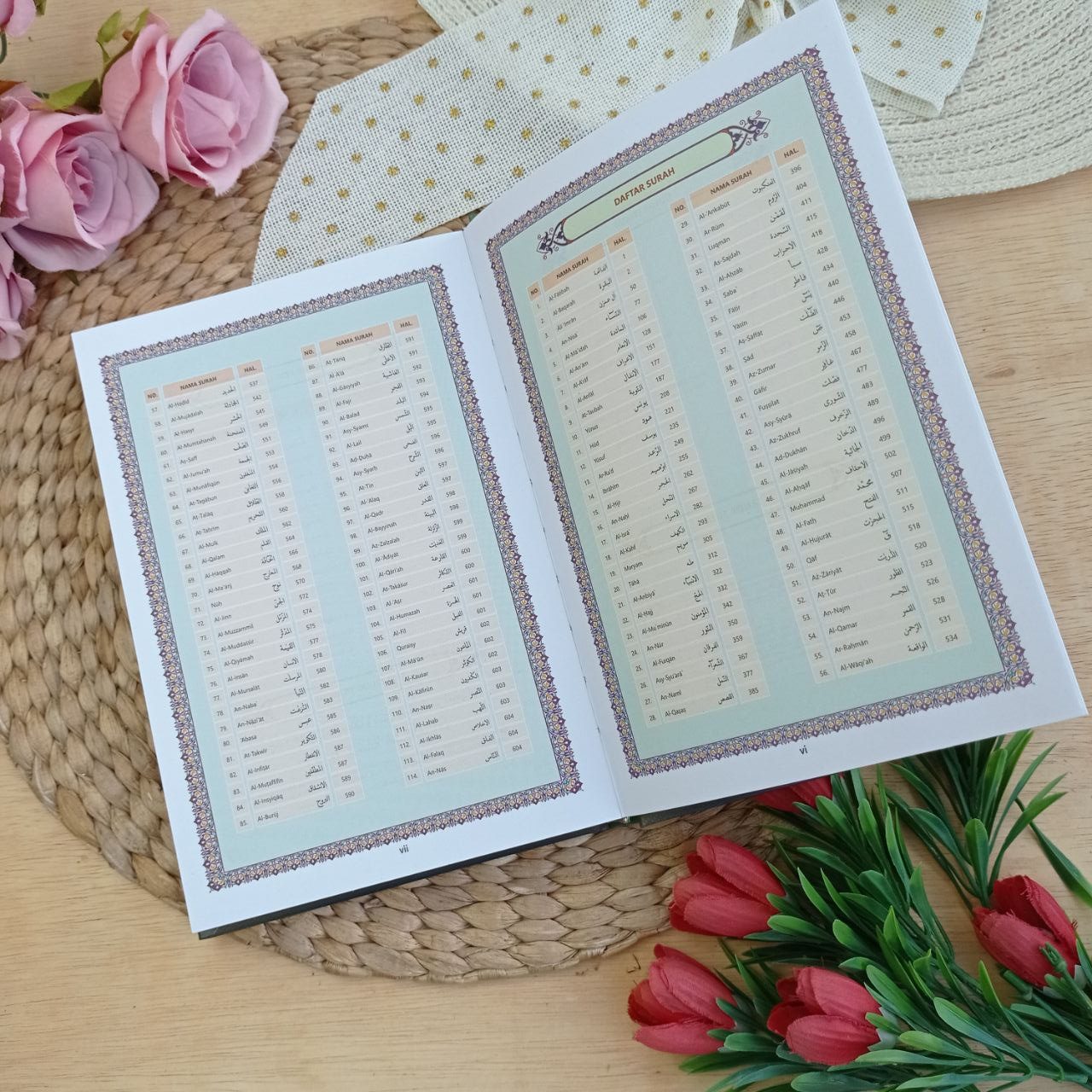 - Ukuran Proporsional: Ukuran A5 yang mudah digenggam dan dibawa, cocok untuk pengajian dan kegiatan keagamaan lainnya.
