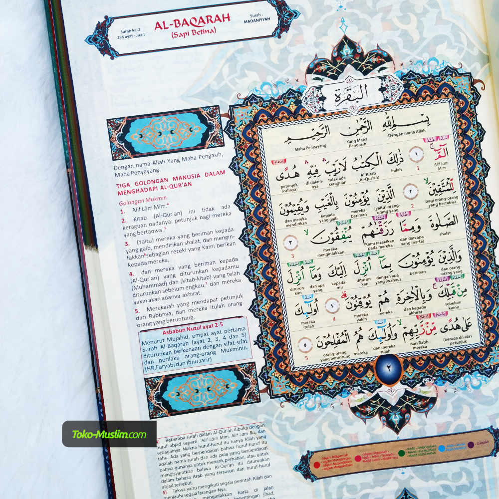 Al-Quran Al Fathan Rasm Utsmani Tajwid Warna Tafsir Perkata ini berukuran A4 sehingga nyaman dibaca baik muda dan tua.