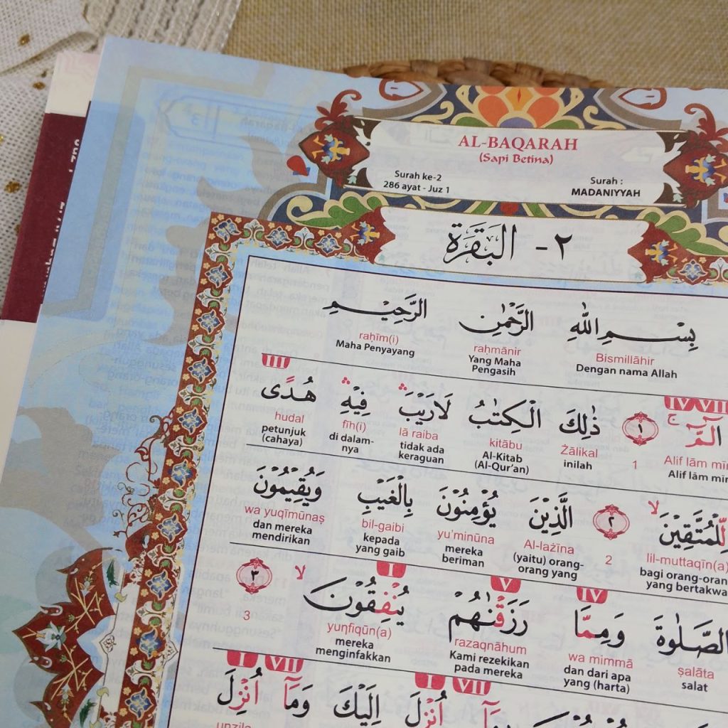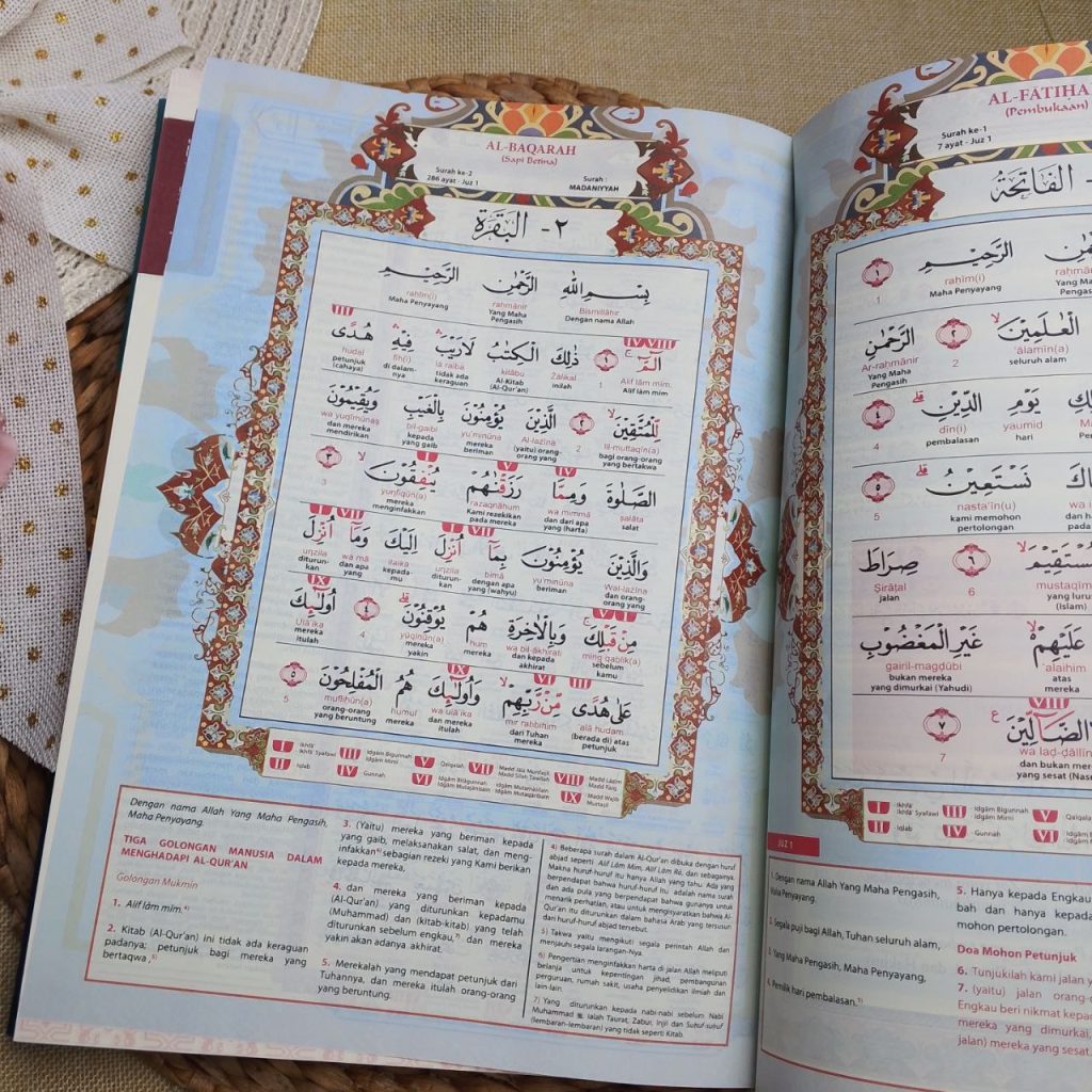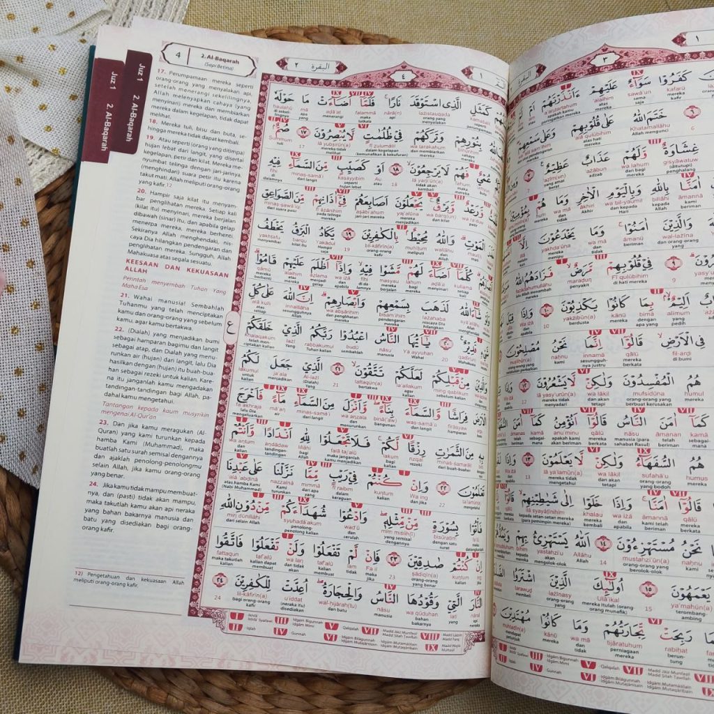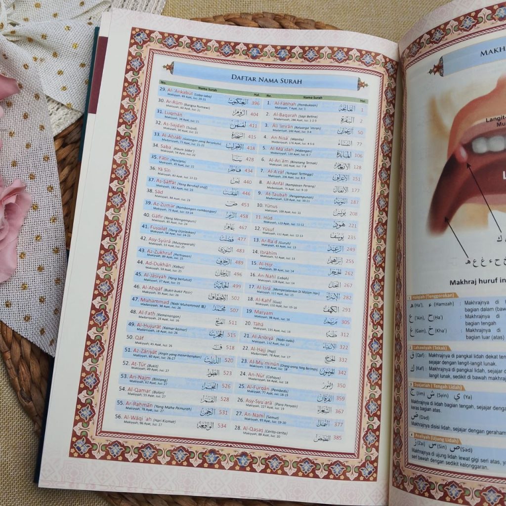- Dilengkapi panduan tajwid, makharijul huruf, dan tanda waqaf.