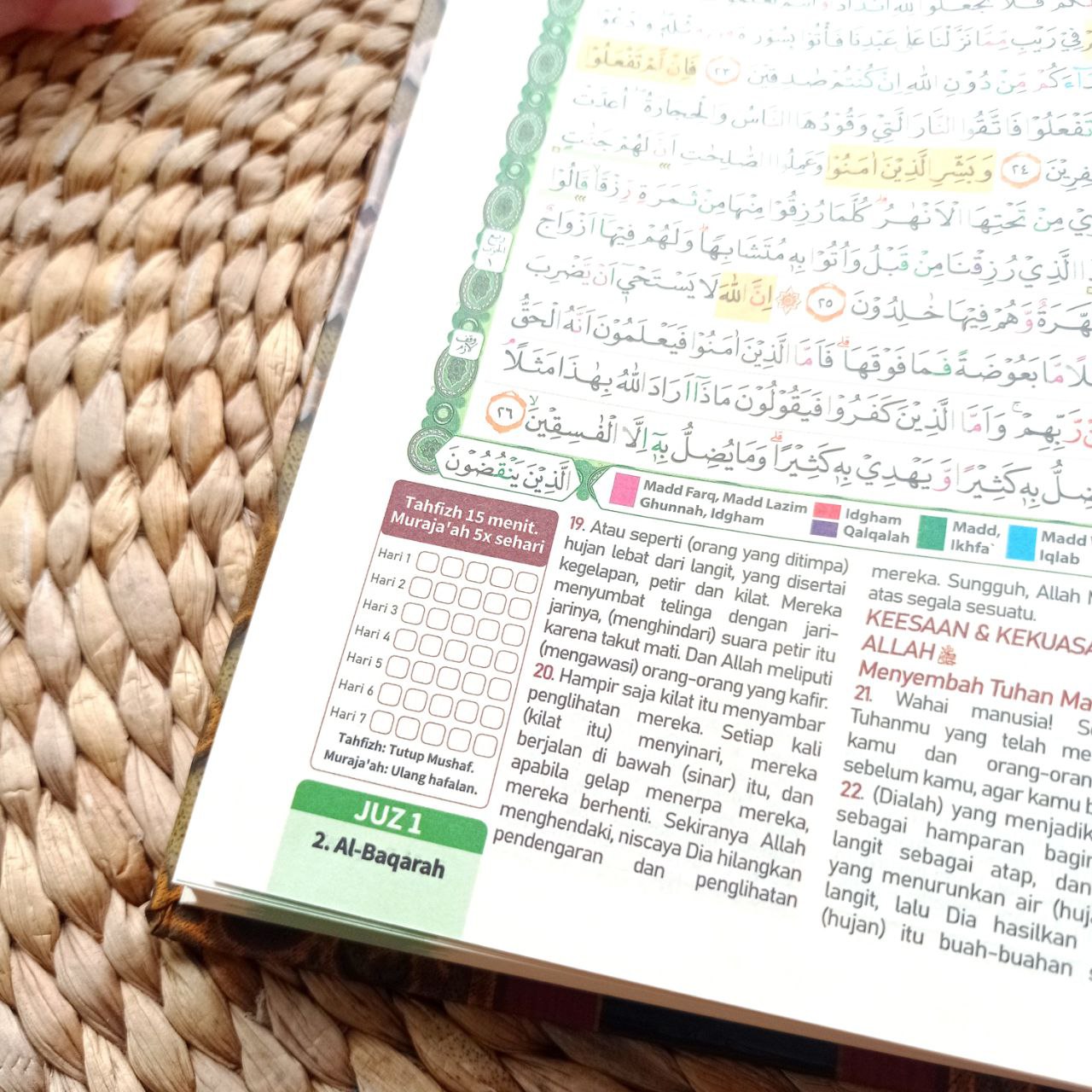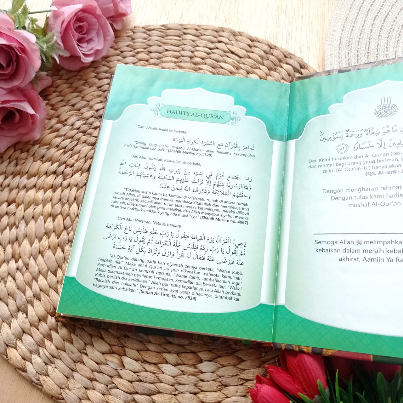 Dalam Al-Quran ini, Anda juga akan menemukan tambahan yang sangat berharga, seperti dzikir pagi-petang, panduan puasa sunnah, panduan tahfizh, etika membaca Al-Quran, dan banyak lagi. Semua ini dirancang untuk membantu Anda mendalami Al-Quran dengan lebih baik.