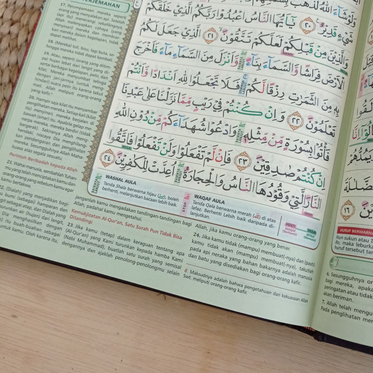 - Panduan Waqaf Jeda: Membuat bacaan lebih lancar dan teratur.