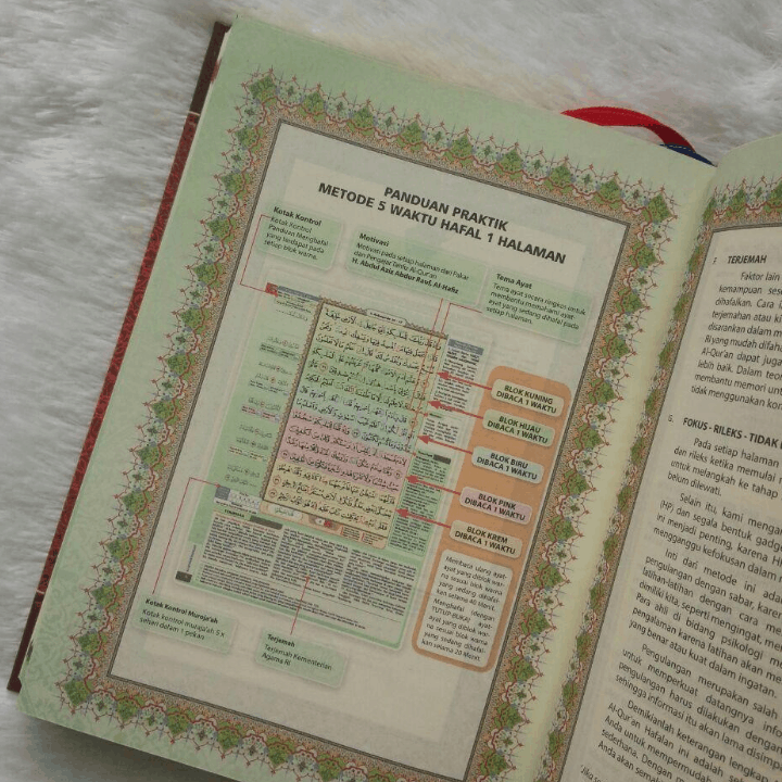Metode ini merupakan cara menghafal Al-Qur’an dengan membagi 5 bagian ayat-ayat dalam satu halaman berdasarkan 5 blok warna yang berbeda. Ayat-ayat yang yang terdapat dalam blok warna masing-masing tersebut dibaca dan dimuroja’ah (dihafal) secara berulang sesuai dengan aturan yang ditetapkan.