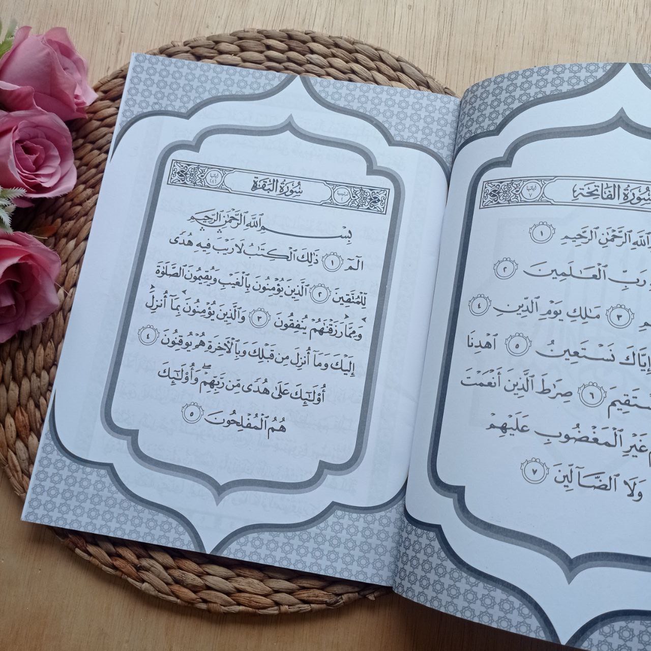 Al-Qur’an Mushaf Al Husna jilid 1 ini terdiri dari tiga surat, dimulai dari Al-Fatihah, surat Al-Baqarah, dan surat Ali Imron.