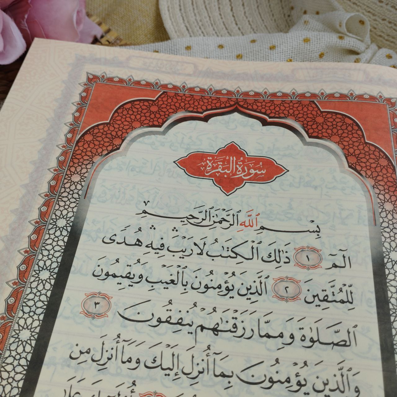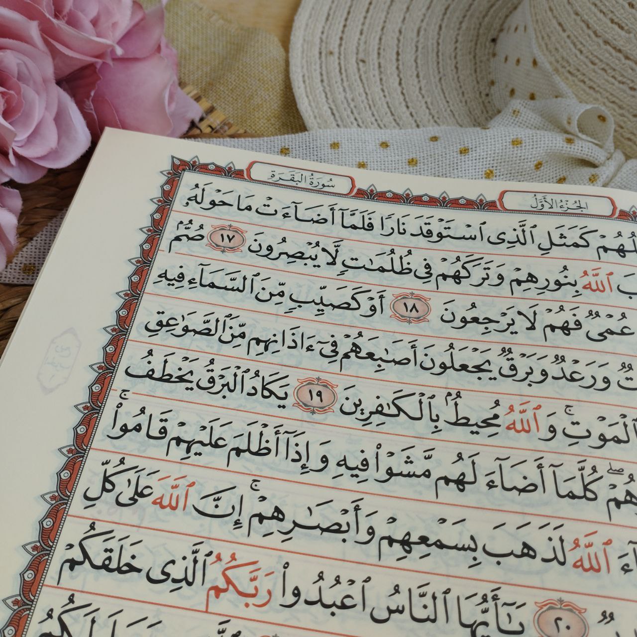 - Lafzul Jalalah Berwarna Merah: Nama Allah (lafzul jalalah) dicetak dengan warna merah, memberikan penekanan khusus untuk menambah keindahan dan ketenangan dalam membaca.