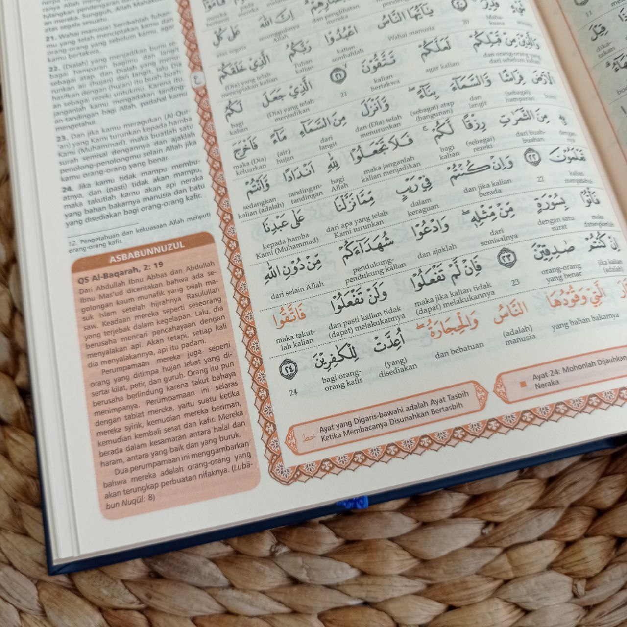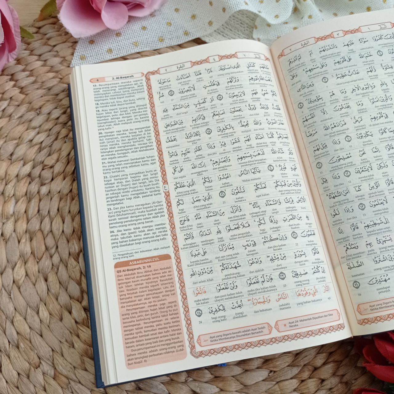 Kelebihan dari al-Qur’an ini dilengkapi dengan Terjemah Kementrian Agama RI, asbabun nuzul, ayat doa, ayat tasbih, intisari ayat dan indeks tematik.