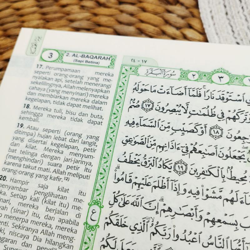 Dicetak dengan kertas QPP berkualitas, menjadikan huruf lebih jelas, nyaman dibaca, dan tahan lama. Ukurannya A5 (praktis & ringan), cocok untuk dibawa bepergian atau digunakan sehari-hari di rumah maupun di majelis ilmu.
