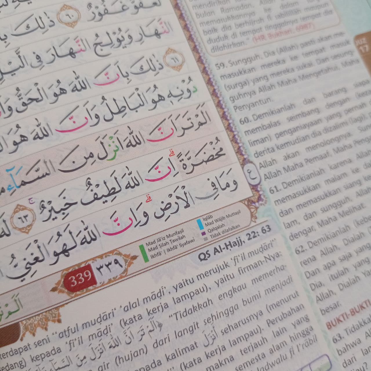 Al-Quranul Karim Terjemahan dan tajwid berwarna, senin menikmati keindahana bahasa al-qur’an guna menjadi muslim unggul. tadabur dengan rasm utsmani lokal, terjemahan versi kemenag, dengan balaghah, intisari ayat.
