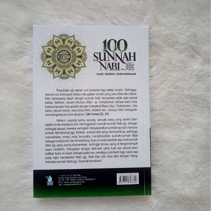Buku “100 Sunnah Nabi Yang Sering Disepelekan” ini memaparkan sejumlah sunnah Nabi yang sering diremehkan. Dilengkapi dengan dali-dalil yang kuat nan akurat menjadikan buku ini layak sebagai pedoman sekaligus panduan bagi siapa saja yang ingin meneladani Nabi shallallahu ‘alaihi wa sallam.
