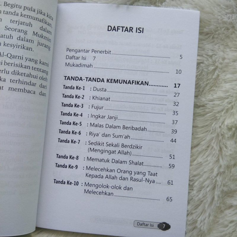 Mereka memiliki tanda-tanda yang disebutkan dalam Al-Qur’an dan Sunnah Nabi Oleh penulis, Syaikh Aidh Al-Qarny, 30 tanda kemunafikan itu disebutkan secara terperinci dan diperkuat dengan dalil-dalil.