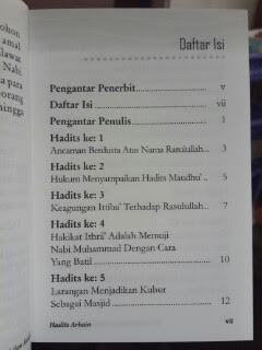 Segala puji bagi Allah. Tiada tuhan yang berhak disembah kecuali Allah. Buku kecil ini bukanlah hadits arba’in nawawi, melainkan hadits-hadits yang disusun oleh beliau Abdul Hakim bin Amir Abdat tentang masalah prinsip dan manhaj dalam beragama, salah satu contohnya: