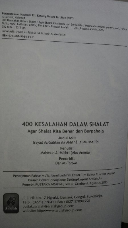 Buku ini berjudul “Buku 400 Kesalahan Dalam Shalat”
