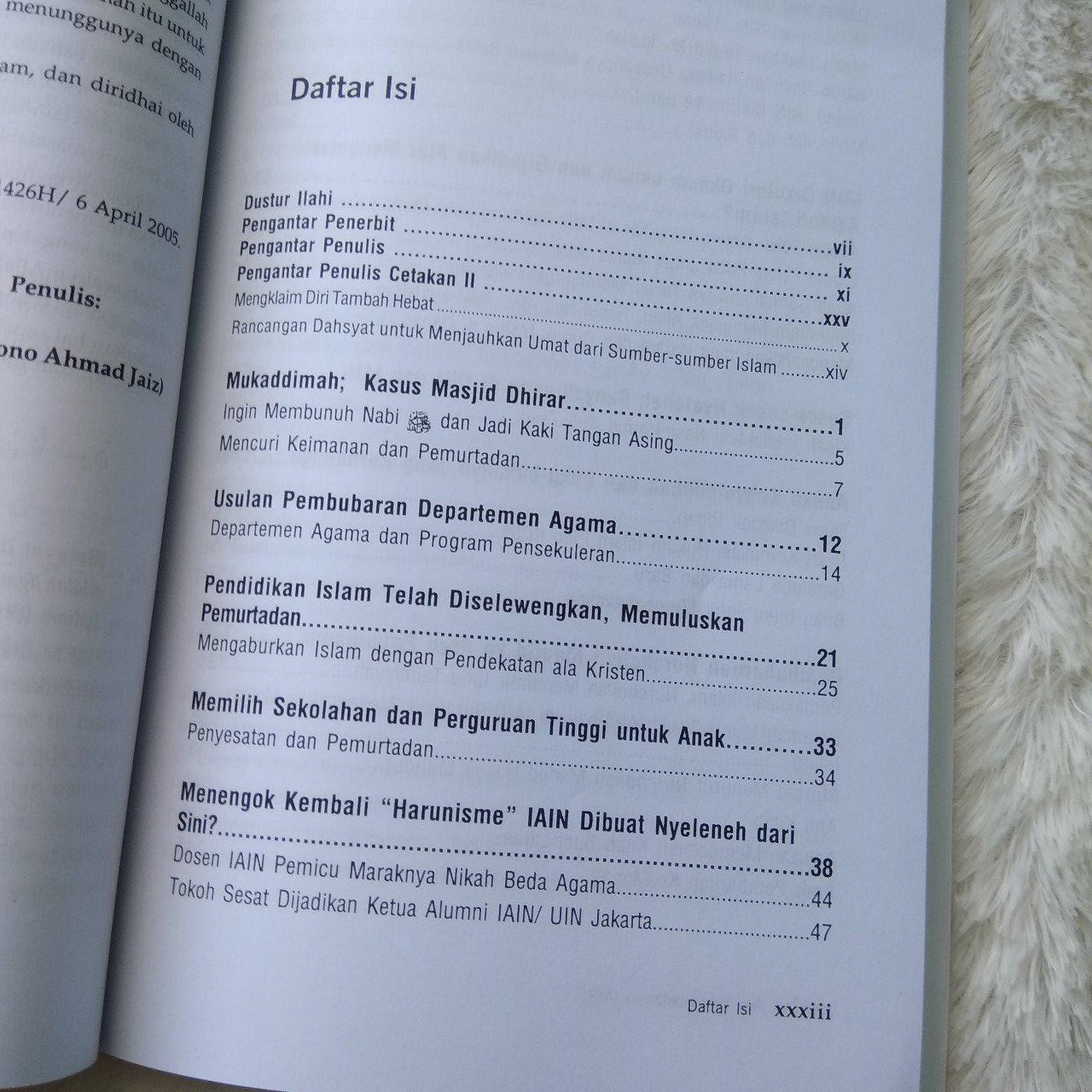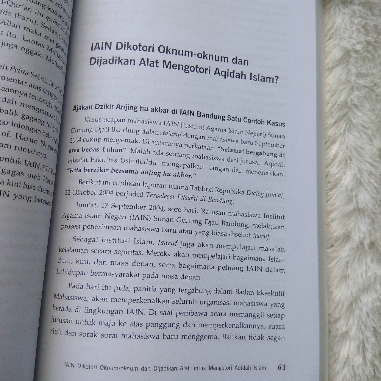 Adalah tugas umat Islam semuanya untuk menyelamatkan IAIN dari tangan-tangan liberal sekular yang sedang bahu-membahu menghancurkan IAIN, agar dapat dikembalikan ke garis Islam yang sebenarnya. Buku ini membuat kita sadar dan tergerak untuk turut memberikan perhatian terhadap adanya pembusukan bahkan pemurtadan di IAIN.