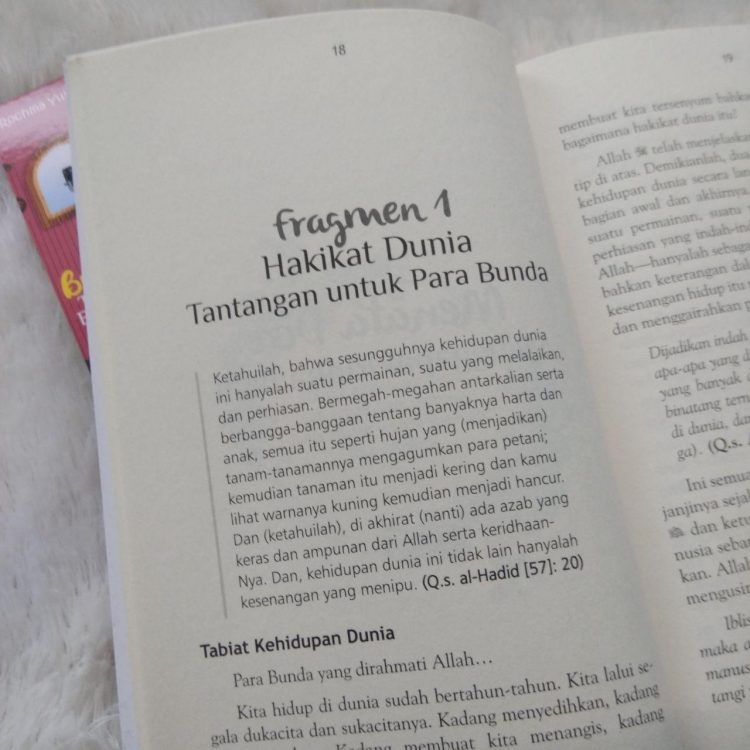 Pertanyaannya kemudian, bagaimana para bunda harus mengambil peran dakwah dan tetap sinergis dengan peran kebundaannya? Bab demi bab dalam buku ini akan memaparkannya. Insya Allah.