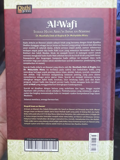 Segala puji bagi Allah Rabb semesta alam. Buku yang berjudul “Al-Wafi” ini adalah syarah dari hadits arba’in nawawi yang ditulis oleh Dr. Musthafa Dieb Al-Bugha & Dr. Muhyiddin Mistu, berikut di antara isinya: