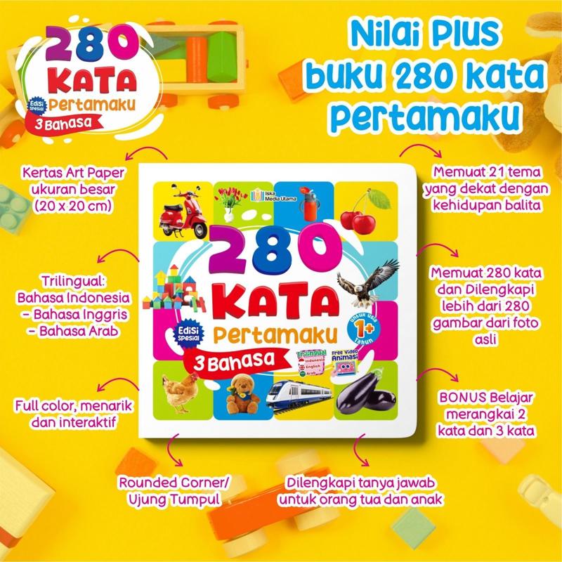 Buku 280 Kata Pertamaku 3 Bahasa hadir sebagai solusi cerdas untuk membantu anak mengenal kosakata sejak dini dengan cara yang menyenangkan, interaktif, dan bermakna. Dirancang khusus untuk masa tumbuh kembang anak, buku ini menjadi salah satu pilihan favorit orang tua dan pendidik, terbukti sebagai produk best seller.