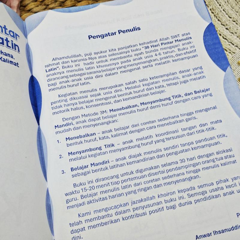 Melalui buku 30 Hari Pintar Menulis Latin, anak diajak belajar menulis secara bertahap dan menyenangkan. Tidak hanya mengenal huruf, tetapi juga melatih kemampuan motorik halus melalui berbagai aktivitas menulis.