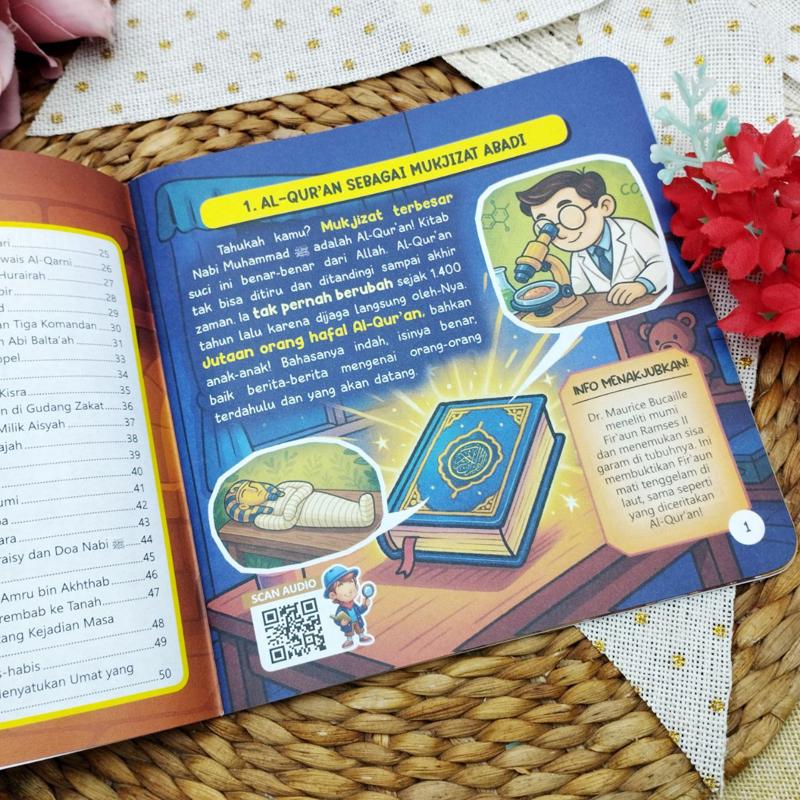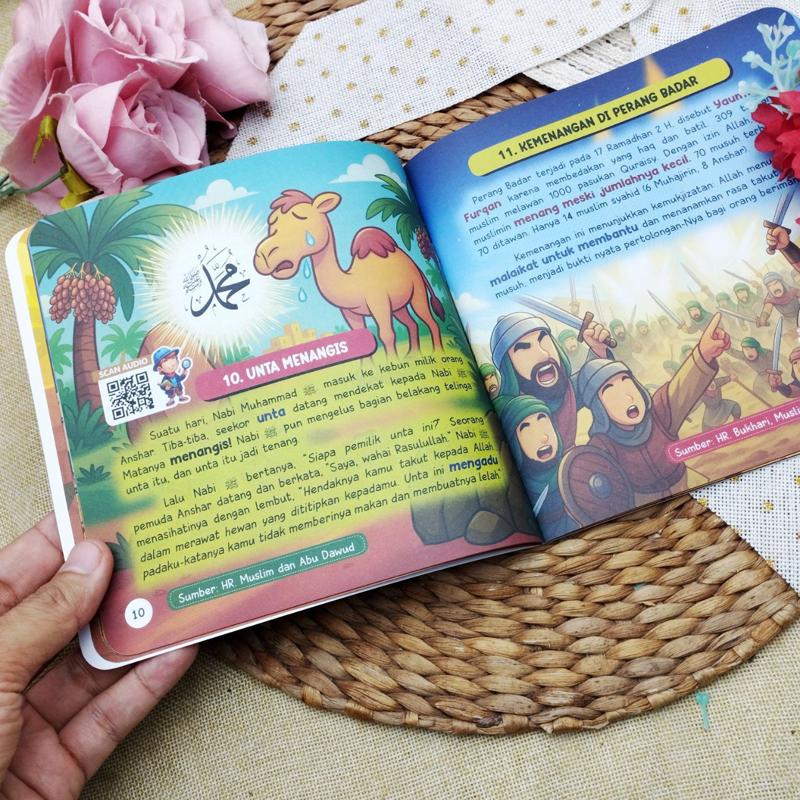 Buku ini menghadirkan kumpulan kisah nyata penuh keajaiban dari kehidupan Nabi Muhammad ﷺ, ditulis khusus untuk anak-anak usia 4–8 tahun.