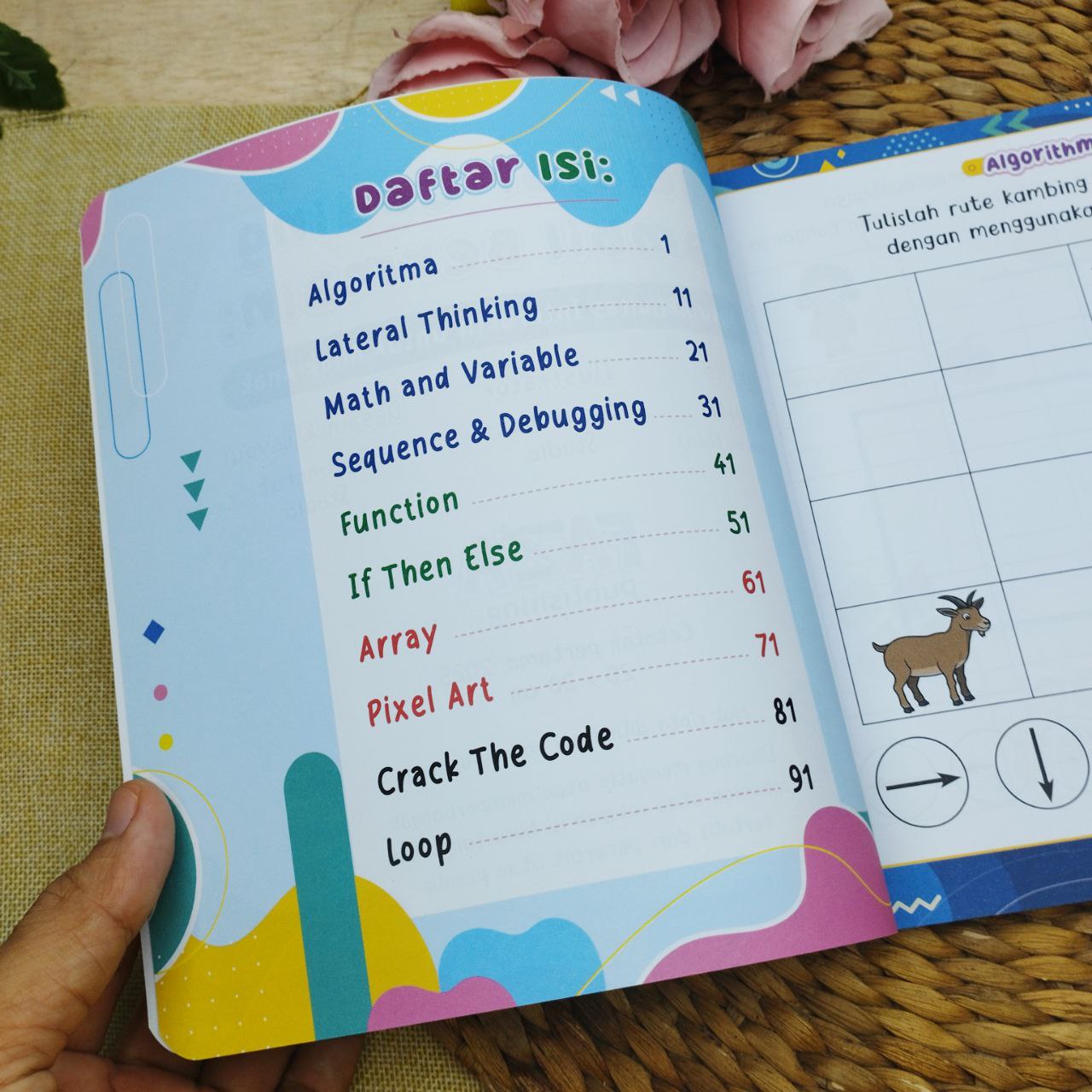 Buku “Belajar Coding Sambil Bermain” hadir dengan aktivitas seru, cerita interaktif, dan ilustrasi menarik yang dirancang khusus untuk anak usia sekolah dasar. Anak akan belajar konsep dasar coding seperti loop, array, hingga debugging — semua tanpa perlu komputer!