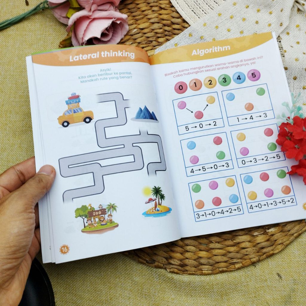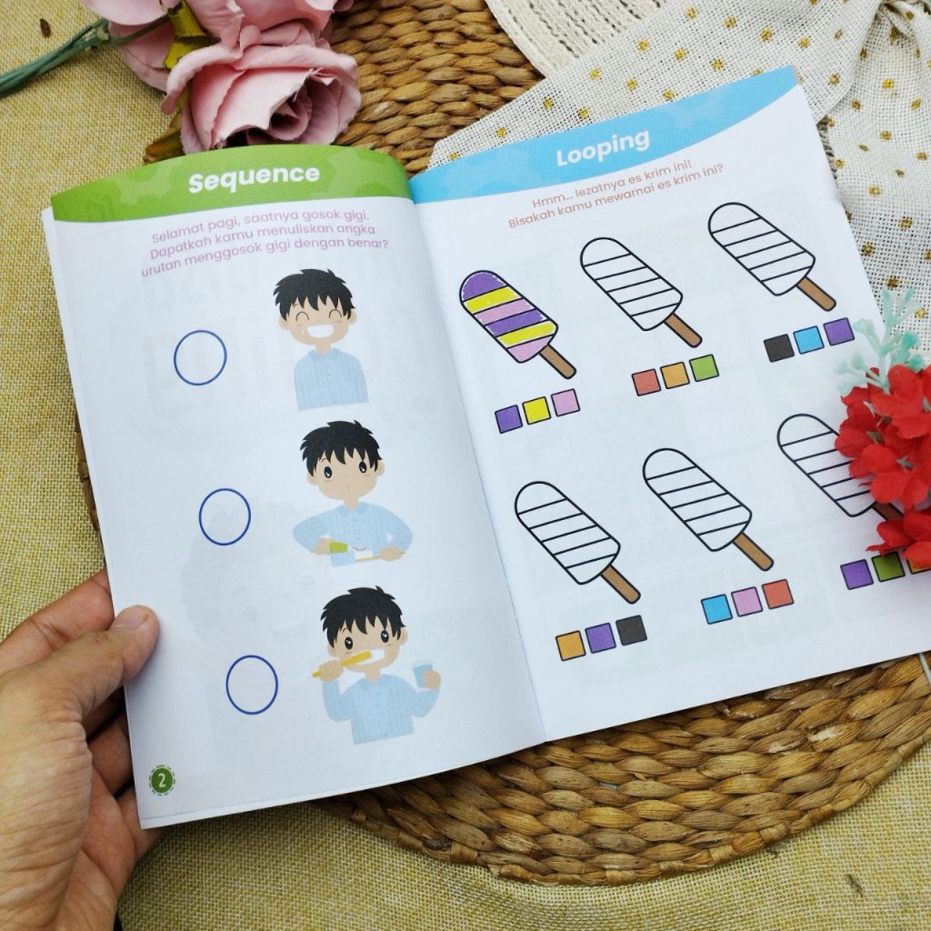 Melalui lembar aktivitas penuh warna dan ilustrasi lucu, anak akan diajak untuk memecahkan masalah, berlogika, dan berpikir sistematis seperti seorang programmer cilik! 👧🧒