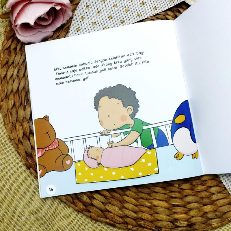 Buku ini mengisahkan seorang anak yang sedang belajar menerima peran baru ketika adik bayi hadir di tengah keluarga. Ia berusaha menunjukkan bahwa dirinya sudah besar, mampu membantu, dan ingin menjadi bagian penting dalam perjalanan keluarga.