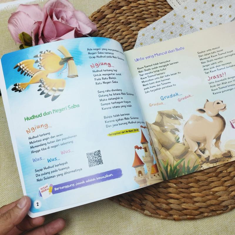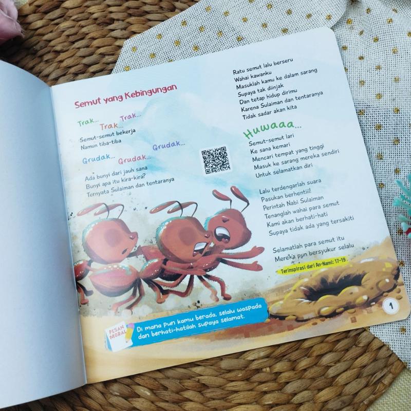 Buku interaktif ini hadir sebagai media edukatif Islami untuk si kecil, khususnya bayi dan balita. Mengangkat kisah-kisah hewan dalam Al-Qur’an seperti ikan paus, unta, semut, burung hud-hud, dan lainnya—yang dikemas dalam bentuk cerita lucu dan gambar penuh warna!