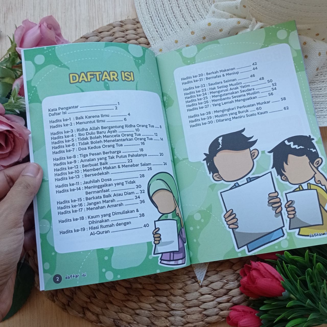Orang tua berusaha memberikan yang terbaik bagi anaknya dan mendidik mereka sebaik mungkin. Meskipun sulit, mendidik anak secara islami dapat dilakukan oleh para ibu di rumah. Salah satu cara adalah dengan menyediakan buku bermutu yang mengajarkan anak-anak menulis hadits. Buku ini berisi 30 hadits shahih pilihan dan melibatkan anak dalam menulis hadits dengan menebalkan tulisan. Terjemah dan penjelasan hadits juga disertakan untuk memudahkan pemahaman.