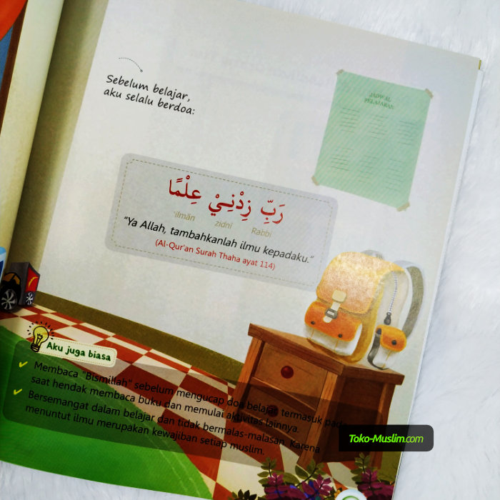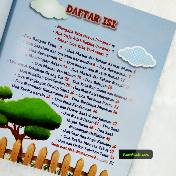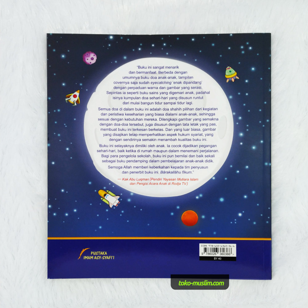 Semua doa di dalam buku ini adalah doa shahih pilihan dari kegiatan dan peristiwa keseharian yang biasa dialami anak-anak, sehingga sesuai dengan kebutuhan mereka. Dilengkapi gambar yang semakna dengan doa-doa tersebut, juga disusun dengan tata letak yang pas, membuat buku ini terkesan berkelas. Dan yang luar biasa, gambar yang disajikan tetap memperhatikan aspek hukum syari’at, yang dengan sendirinya semakin menambah kualitas buku ini.