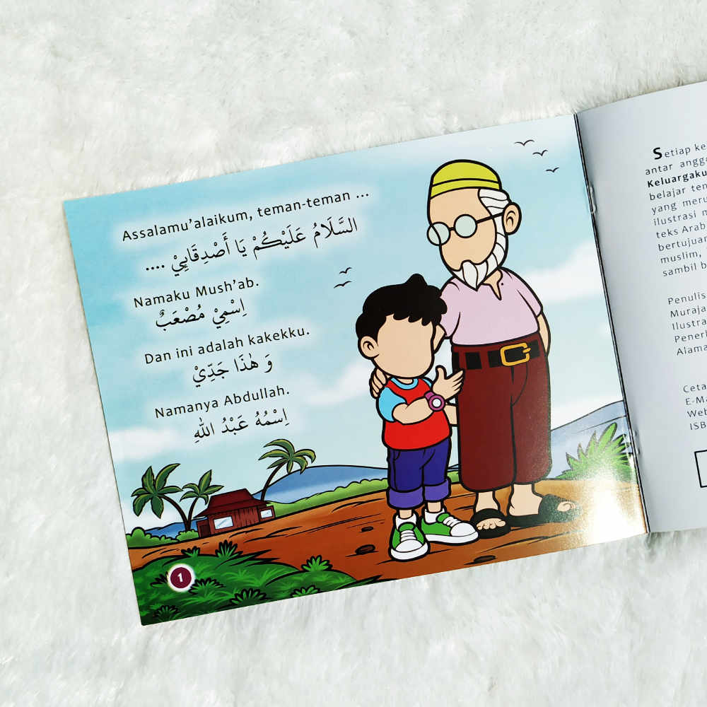 Buku ini juga dilengkapi dengan ilustrasi menarik dan Full Colour agar anak-anak senang membacanya. Adapun Arab yang merupakan terjemah sederhana dari teks Indonesia dalam buku ini ujuan mengenalkan dan memasyarakatkan bahasa Arab di kalangan keluarga muslim, khususnya anak-anak kaum muslimin. Belajar adab dan akhlaq karimah bil belajar bahasa Arab, kenapa tidak? Selamat bersenang-senang …