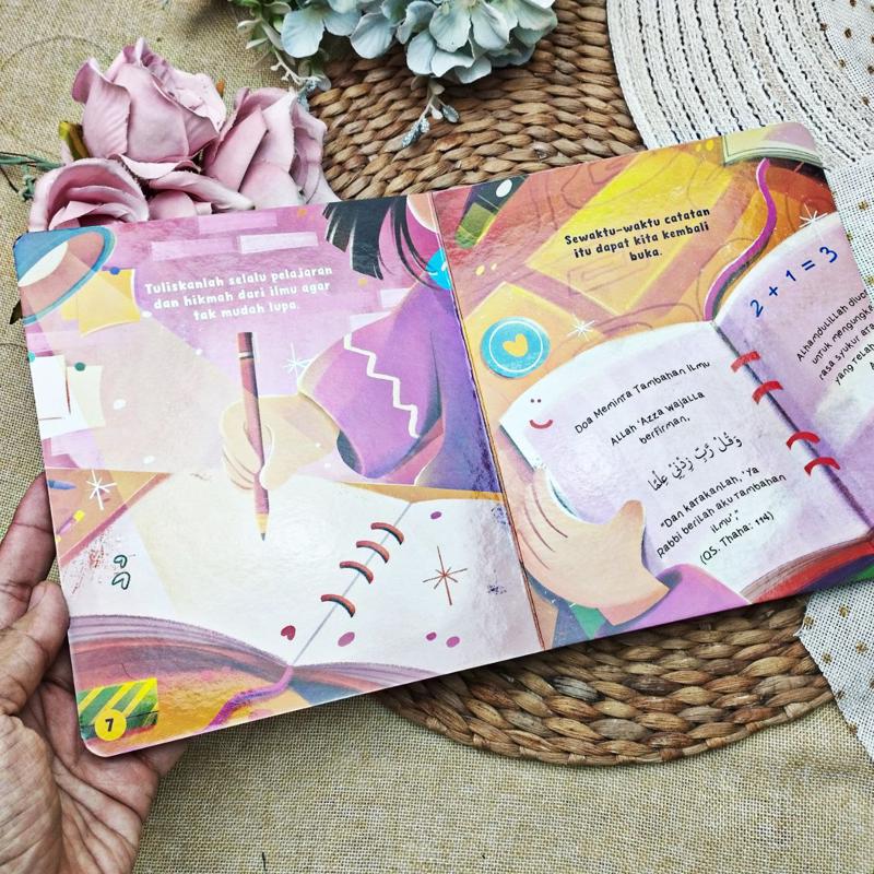 Melalui buku boardbook ini, anak-anak diajak memahami pentingnya mencatat pelajaran sebagai bagian dari adab dalam menuntut ilmu. Kebiasaan menulis hikmah dari ilmu yang didapat akan membantu mereka mengingat, memahami, dan mengamalkannya dalam kehidupan sehari-hari.