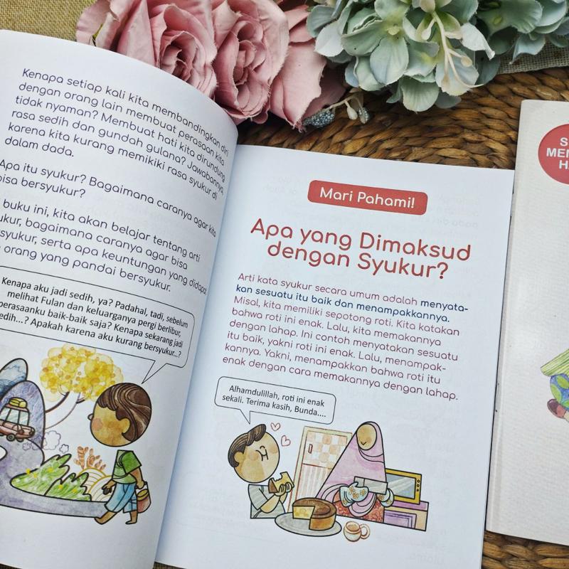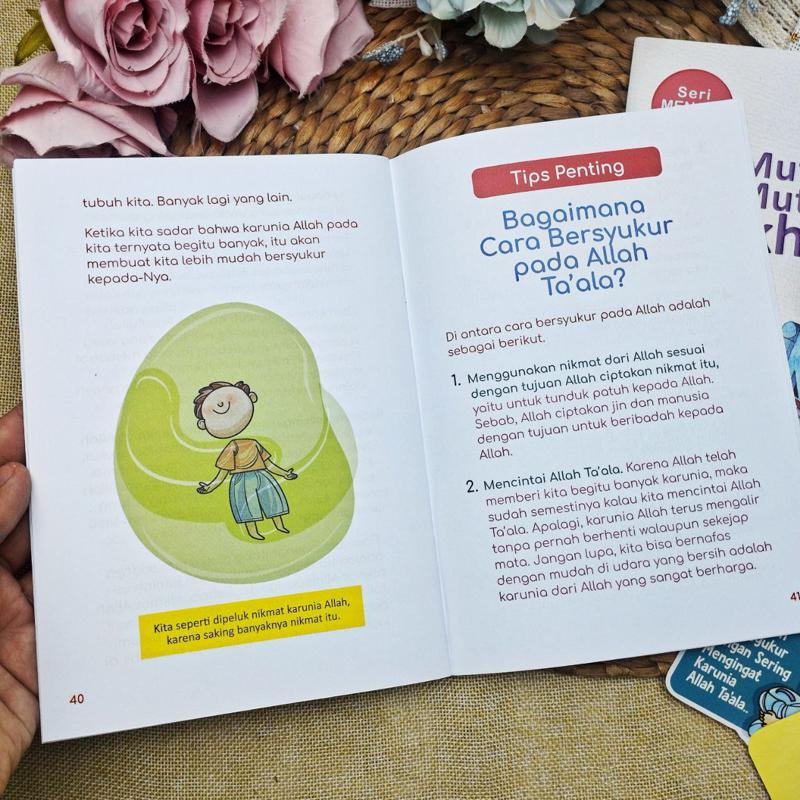 Mutiara-Mutiara Syukur mengajak anak memahami arti syukur, bagaimana cara mengamalkannya, serta merasakan ketenangan hati yang lahir dari rasa syukur kepada Allah.