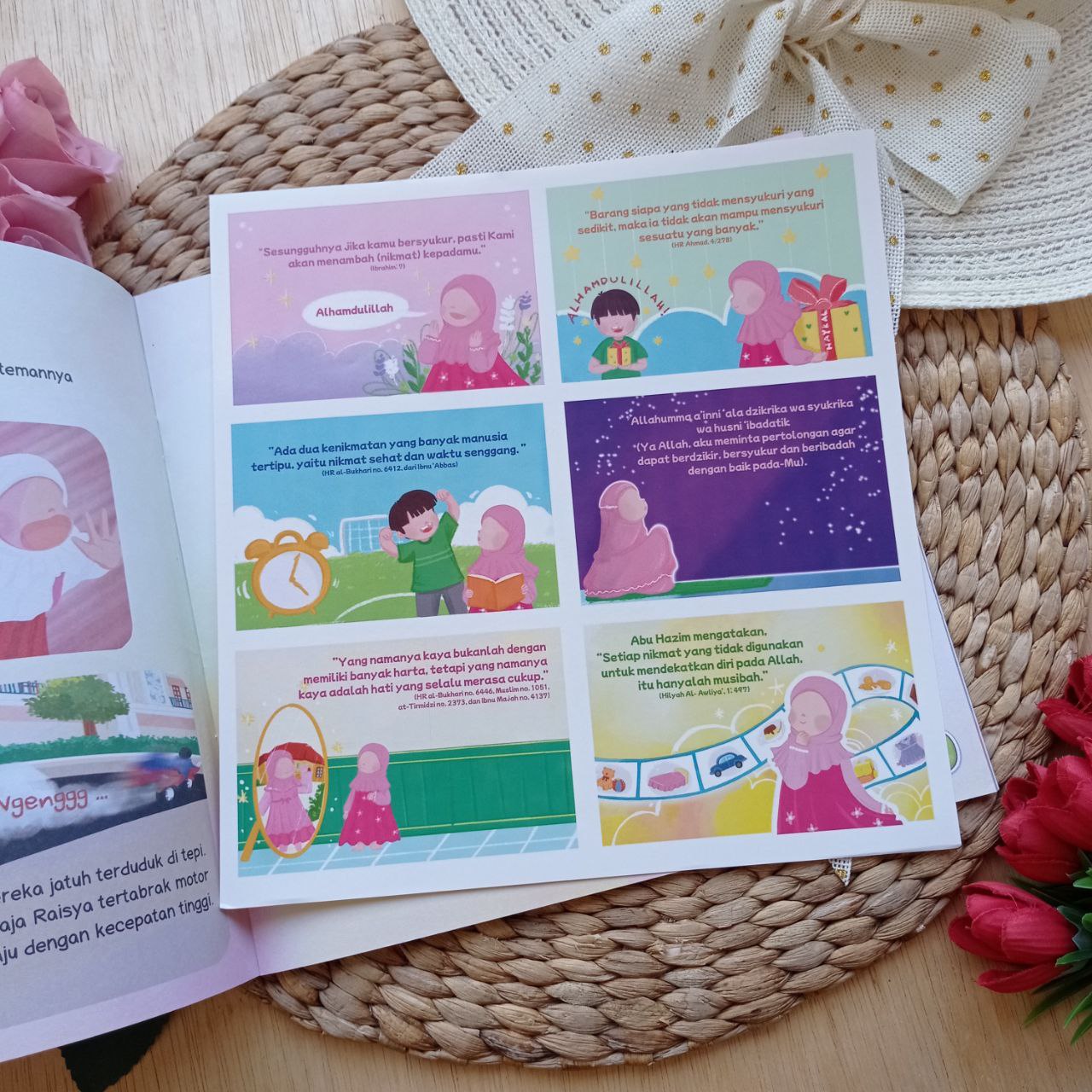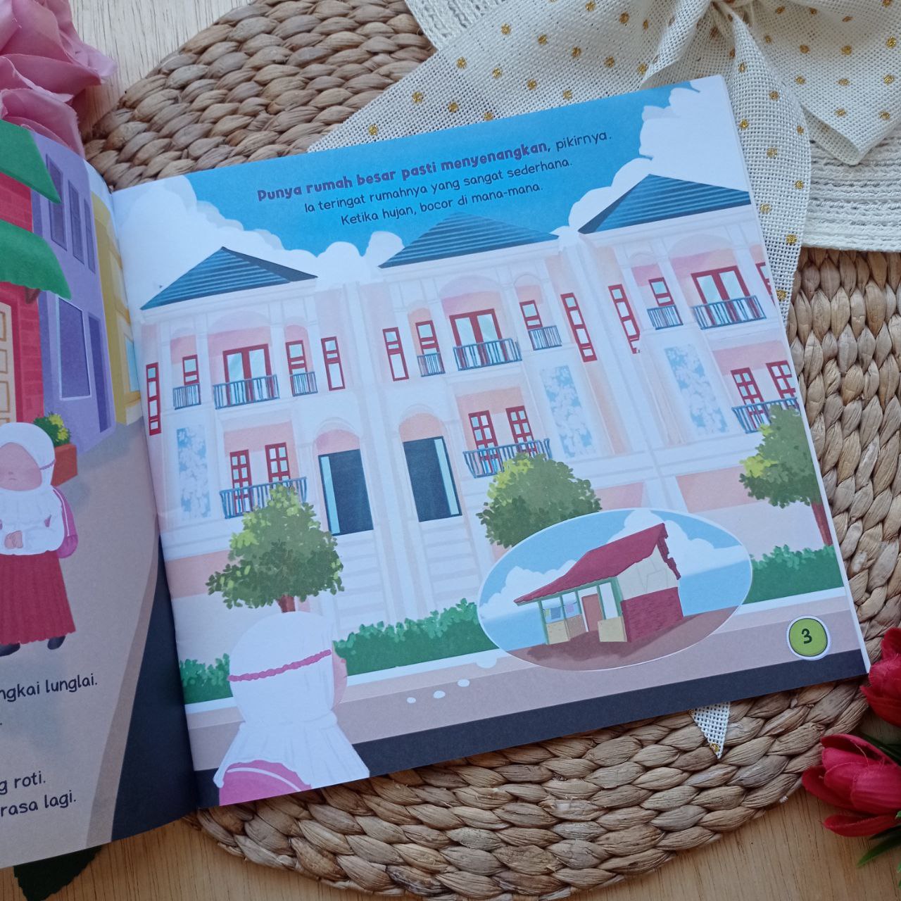 Dalam buku ini, anak akan diajak memahami makna kaya yang sesungguhnya, juga makna bahagia dan bersyukur. Anak akan mulai belajar bahwa kebahagiaan bisa didapatkan dengan cara sederhana dari apa yang ada di sekitar kita.