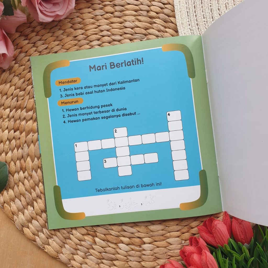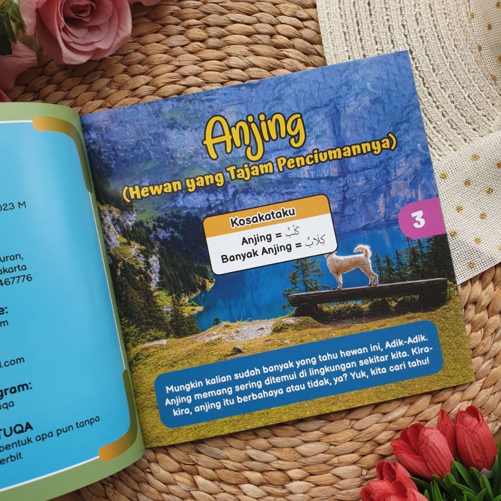 Nah, di buku ini kita akan mengenal hewan-hewan yang disebutkan dalam Al-Qur’an atau hadits. Kalian akan diajak mengenali bentuk tubuhnya, habitatnya, jenisnya, dan fakta menarik yang mungkin belum kalian ketahui. Ada juga kosakata bahasa Arabnya yang bisa dihafalkan.