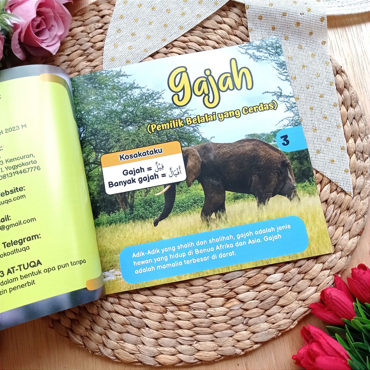 Nah, di buku ini kita akan mengenal hewan-hewan yang disebutkan dalam Al-Qur’an atau hadits. Kalian akan diajak mengenali bentuk tubuhnya, habitatnya, jenisnya, dan fakta menarik yang mungkin belum kalian ketahui. Ada juga kosakata bahasa Arabnya yang bisa dihafalkan.