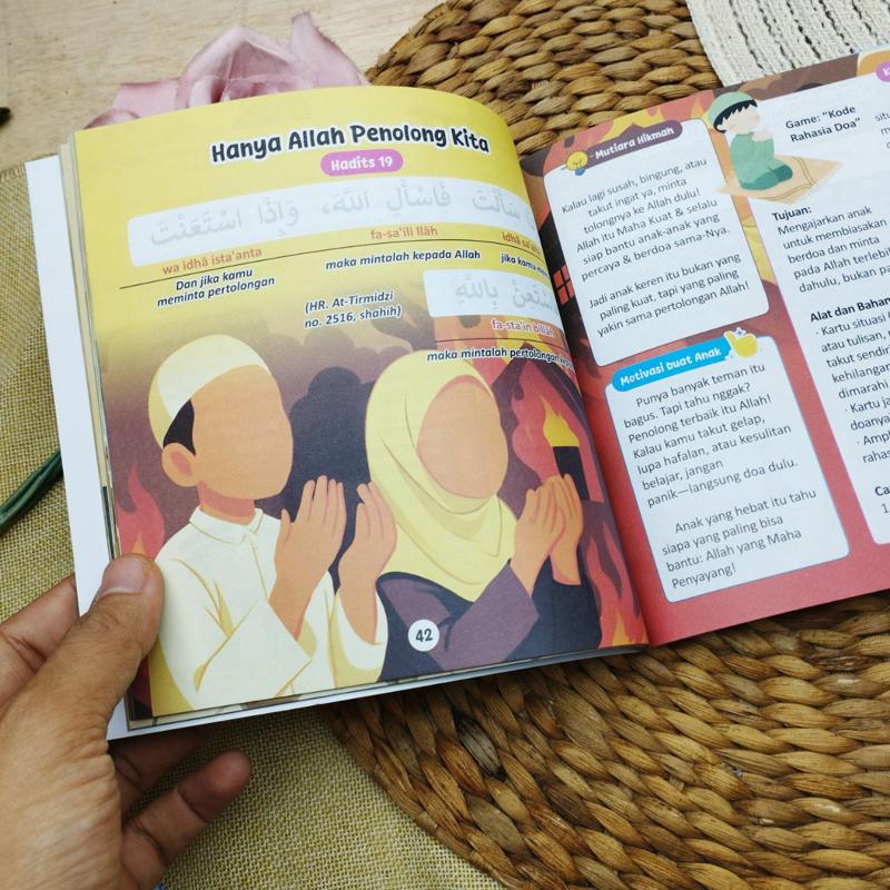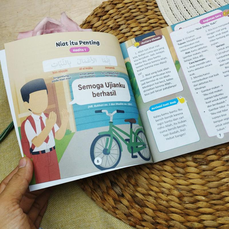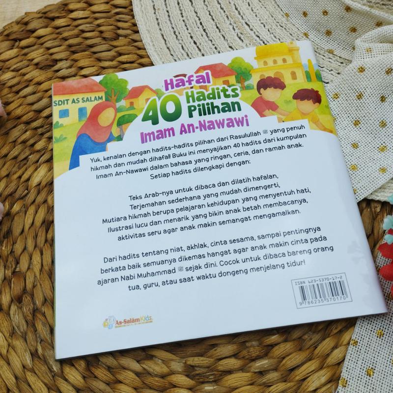 Buku ini dirancang khusus agar anak lebih mudah menghafal dan memahami Hadits Arbain melalui pendekatan yang menyenangkan dan aplikatif. Tak sekadar menghafal, anak juga diajak mengamalkan hadits dalam kehidupan sehari-hari lewat aktivitas, dongeng, dan permainan seru.