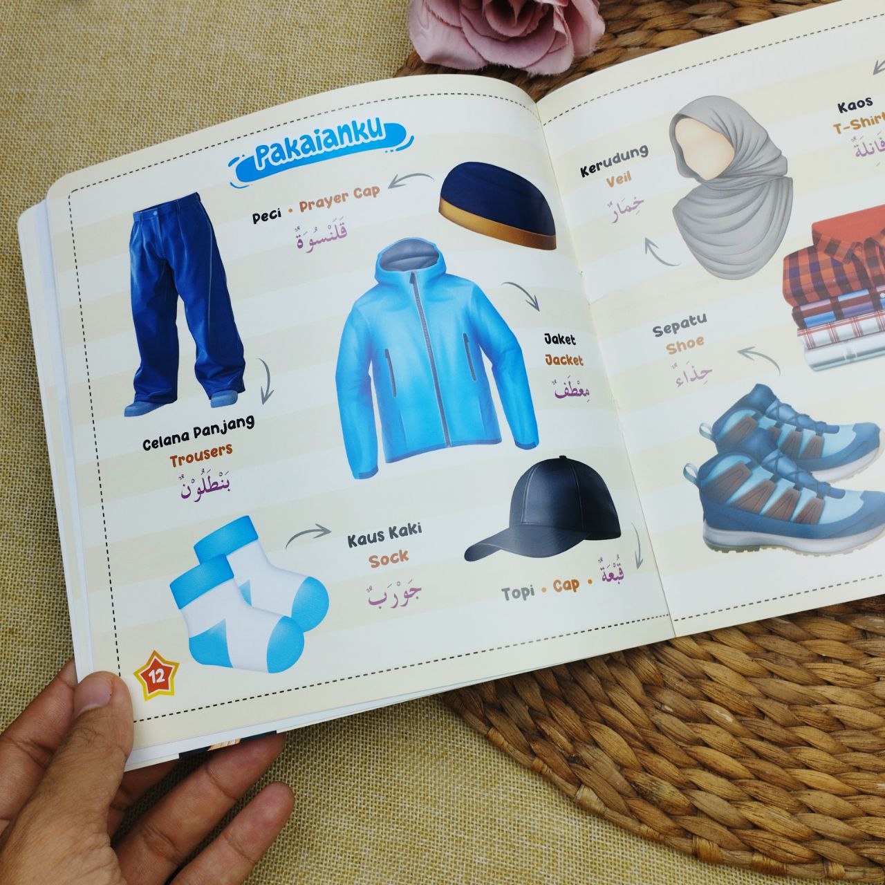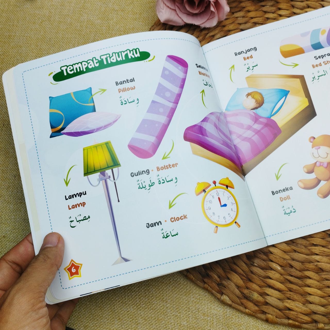 – Kosakata dalam tiga bahasa: Indonesia, Inggris, dan Arab