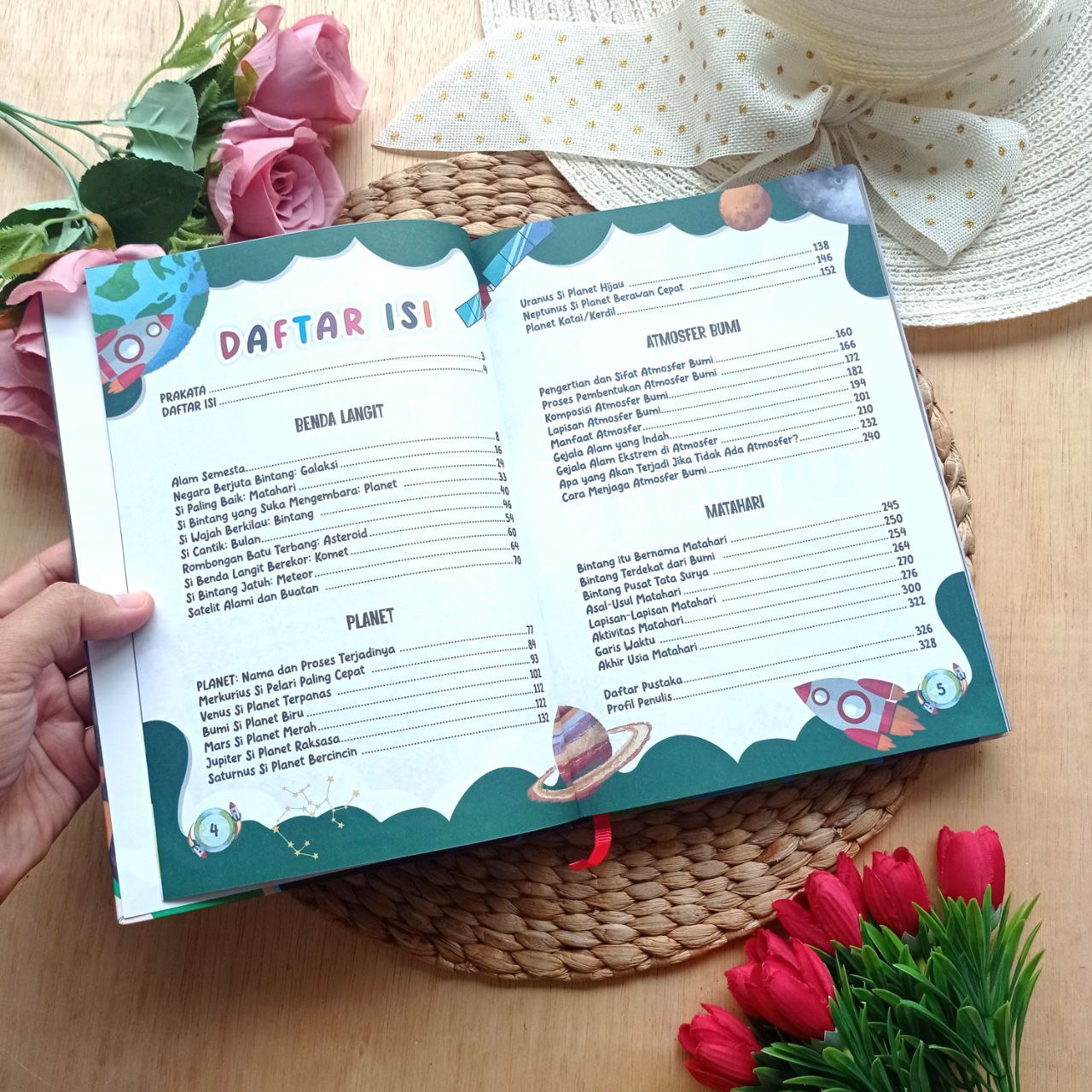 Buku ini akan menjawab rasa keingintahuan kalian karena mengulas cukup detil nama-nama planet yang tergabung dalam Tata Surya. Ada pula penjelasan apa itu atmosfer Bumi, bagaimana terciptanya Matahari, ukurannya, dan karakteristik benda langit lainnya.