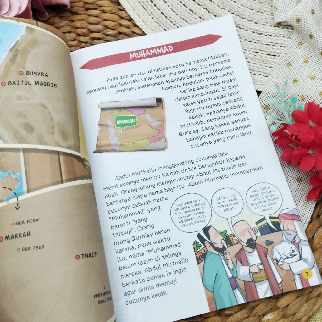 Komik ini dilengkapi peta jejak perjalanan Rasulullah, sehingga anak tidak hanya membaca cerita, tetapi juga dapat melihat visual lokasi penting, membayangkan peristiwa bersejarah, dan memahami konteks geografis dakwah Nabi.