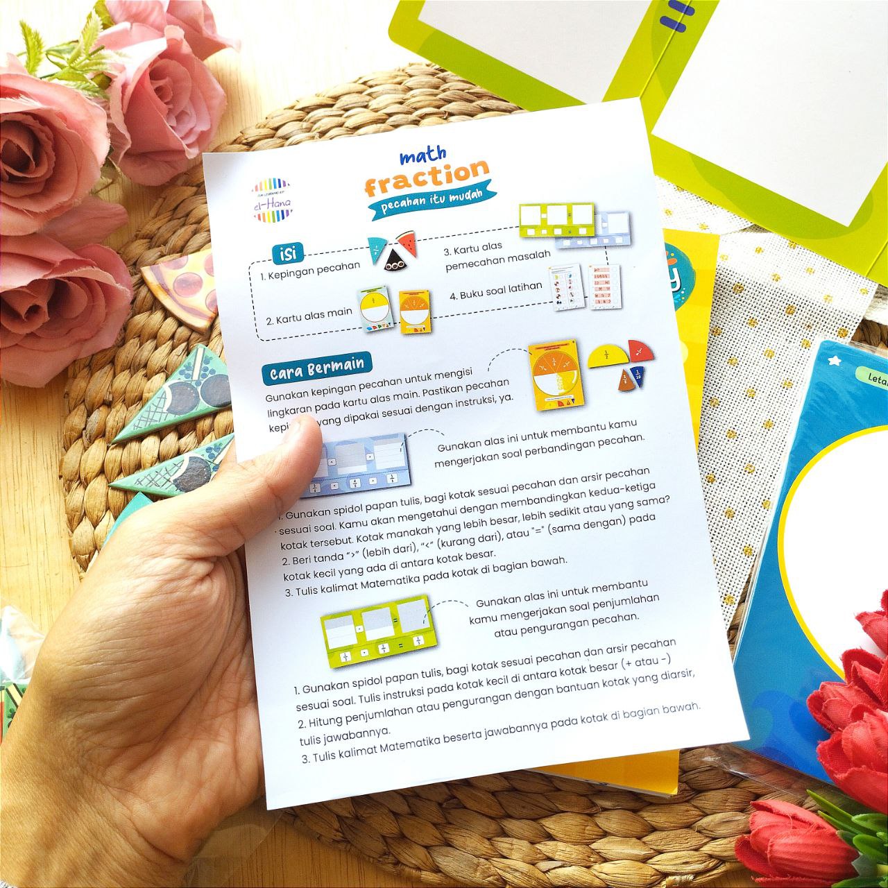 Cara menyenangkan belajar konsep pecahan untuk anak usia sekolah dasar. Didesain berupa kepingan makanan yang berbentuk pecahan, seperti kue, pizza, dan buah yang mereka kenal sehari-hari untuk membantu mereka lebih mudah memahami konsep yang ingin diajarkan.