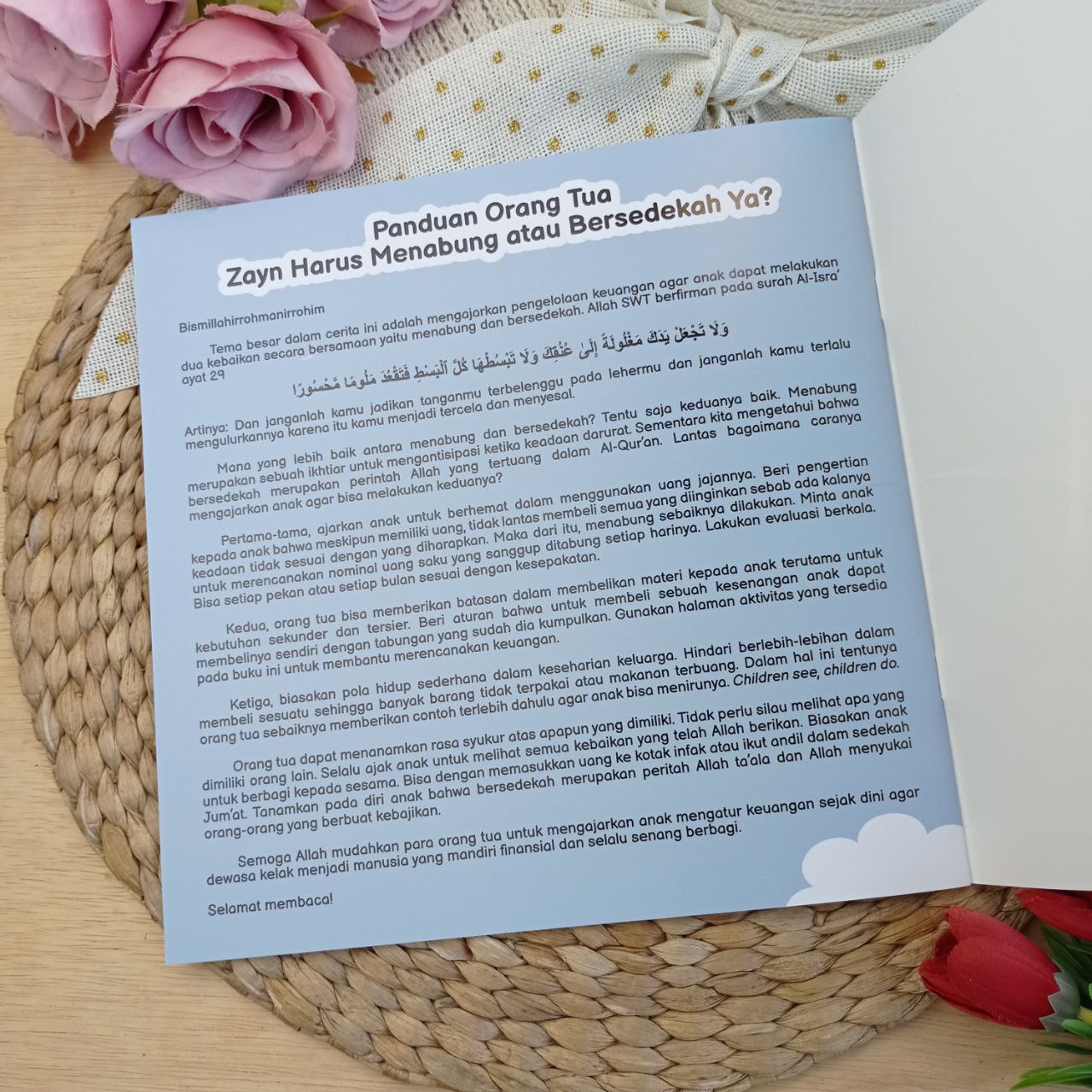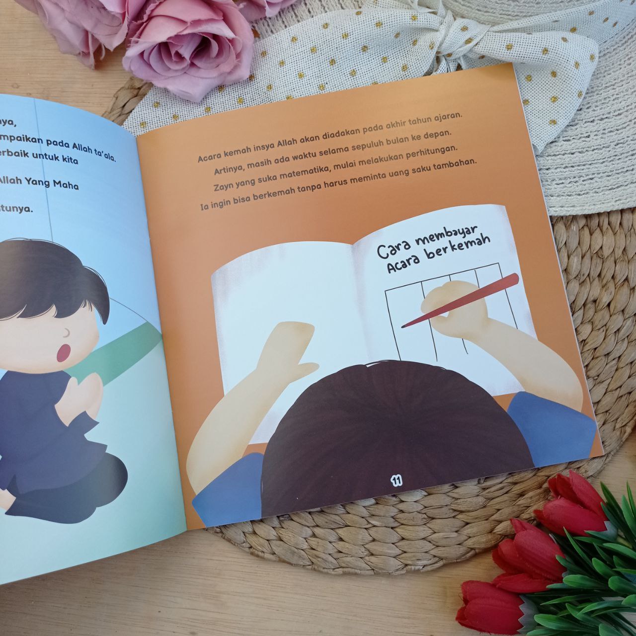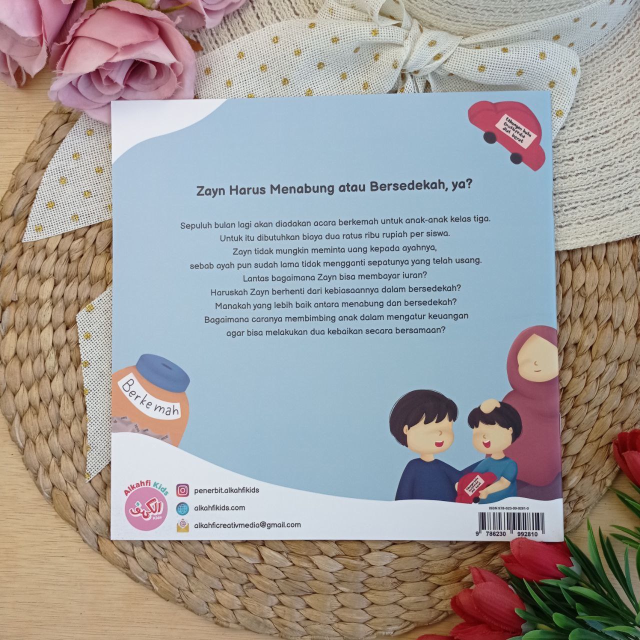 Sepuluh bulan lagi akan diadakan acara berkemah untuk anak-anak kelas tiga. Setiap siswa harus membayar iuran dua ratus ribu rupiah. Zayn tidak mungkin meminta uang kepada ayahnya, sebab ayahnya pun sudah lama tidak mengganti sepatunya yang telah usang. Lantas, bagaimana Zayn bisa membayar iuran tersebut? Haruskah Zayn berhenti dari kebiasaannya bersedekah? Manakah yang lebih baik antara menabung dan bersedekah? Buku ini membantu anak-anak memahami cara mengatur keuangan agar bisa melakukan dua kebaikan secara bersamaan.