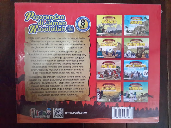 Alhamdulillah telah hadir di tengah-tengah kita Buku anak berjumlah 8 jilid yang menceritakan tentang apa-apa saja & bagaimana peperangan-peperangan yang terjadi pada zaman Rasulullah shallallaahu ‘aliahi wa sallam.
