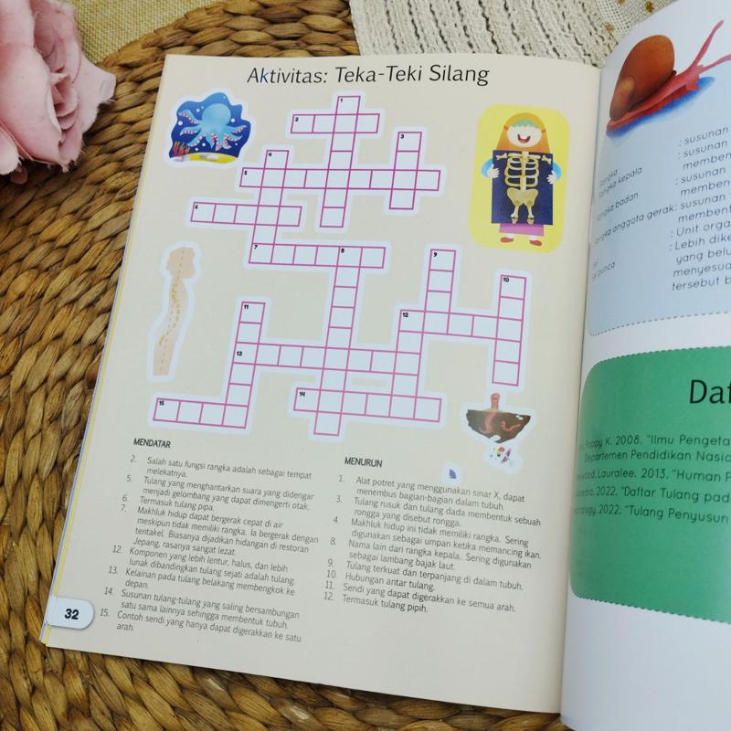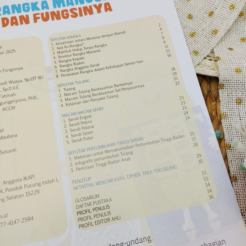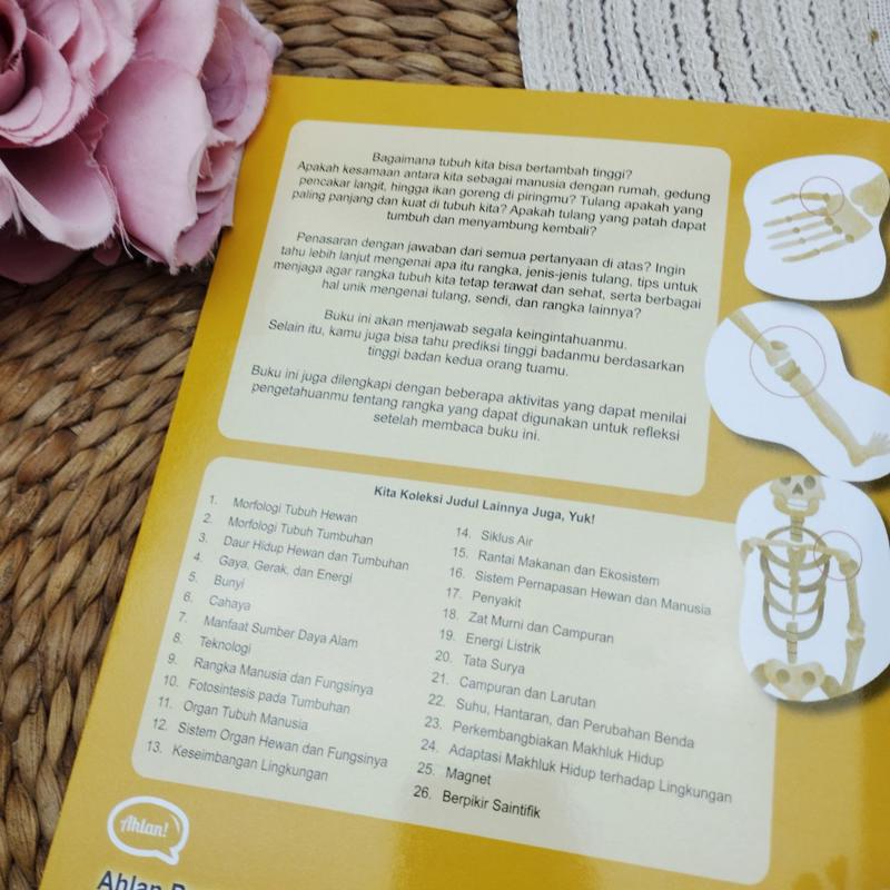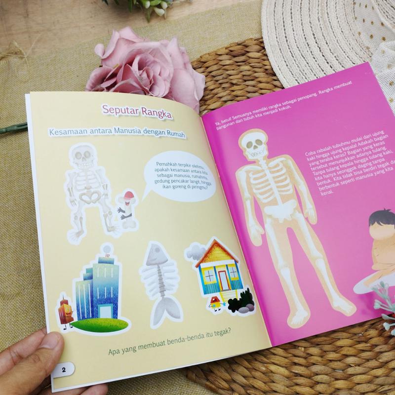 Melalui buku ini, kita akan mengenal berbagai bagian rangka manusia, mulai dari tengkorak, tulang belakang, hingga tulang kaki, serta mempelajari fungsi-fungsinya dengan cara yang menyenangkan dan mudah dipahami.