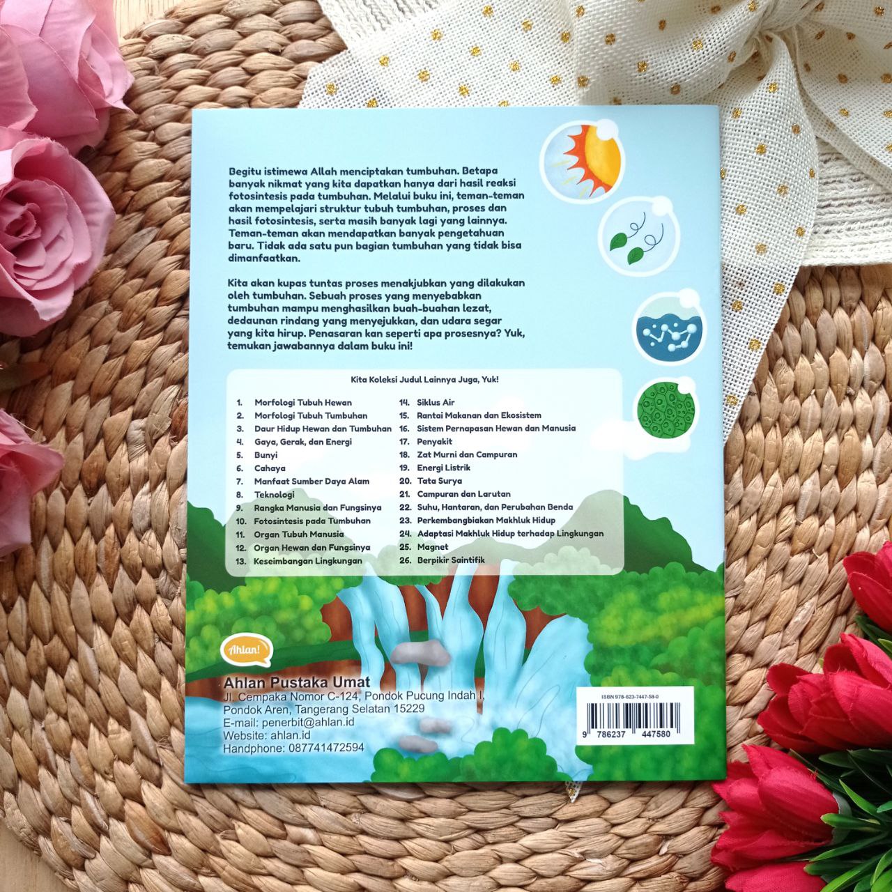 Melalui buku ini, teman-teman akan mempelajari struktur tubuh tumbuhan, proses dan hasil fotosintesis, serta masih banyak lagi yang lainnya.