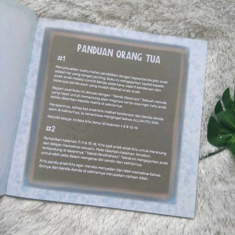 Buku ini juga dilengkapi dengan halaman panduan untuk orang tua tentang parenting dan beberapa teknik komunikasi dalam pendidikan anak.