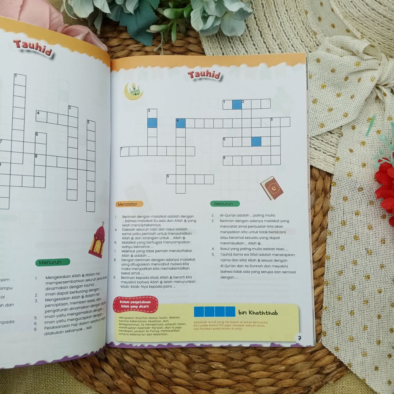 Melalui permainan kata seperti TTS, Cara Kata, Susun Kata, dan Mencocokkan, akan diajak memahami tauhid, akidah, akhlak, fikih, sejarah islam, dan kisah para sahabat Rasulullah Shalallahu ‘alaihi wa salam.
