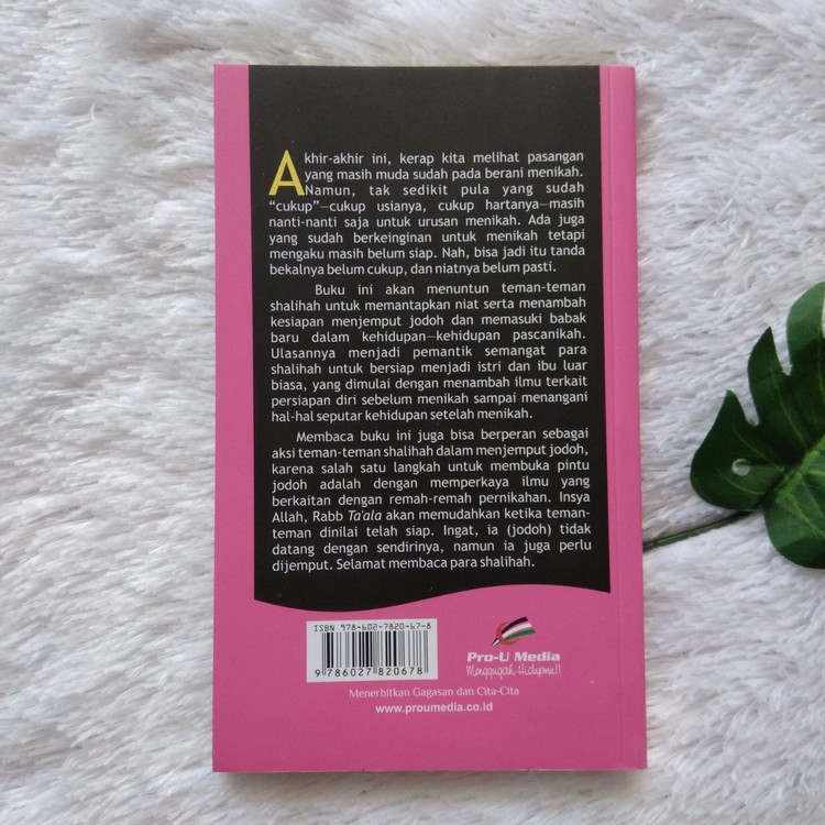 Membaca buku ini juga bisa berperan sebagai aksi teman-teman shalihah dalam menjemput jodoh, karena satah satu langkah untuk membuka pintu jodoh adalah dengan memperkaya ilmu yang berkaitan dengan remah-remah pernikahan. Insya Allah, Rabb Ta’ala akan memudahkan ketika teman-teman dinilai telah siap. Ingat, ia (jodoh) tidak datang dengan sendirinya, namun ia juga perlu dijemput. Selamat membaca para shalihah.