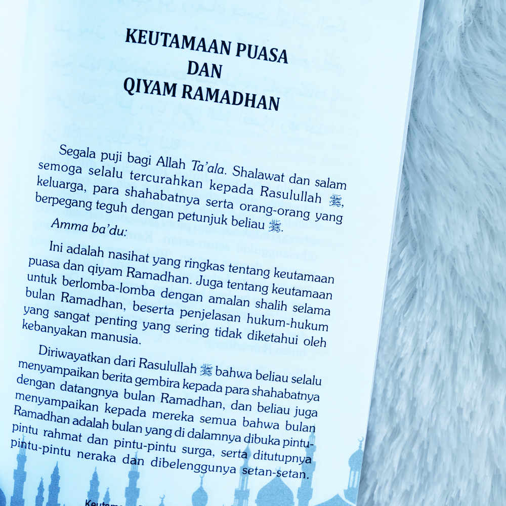 Persoalan-persoalan seperti itulah yang dikupas dalam buku ini. Singkat tetapi jelas, itulah yang dibutuhkan dan di buku inilah akan didapatkan. Apalagi jawaban-jawaban tersebut disampaikan oleh para syaikh yang tak diragukan lagi kefakihan dan kredibilitasnya dalam persoalan-persoalan Din. Anda termasuk orang yang peduli dengan ibadah-ibadah di bulan Ramadhan, buku ini layak menjadi pegangan Anda.