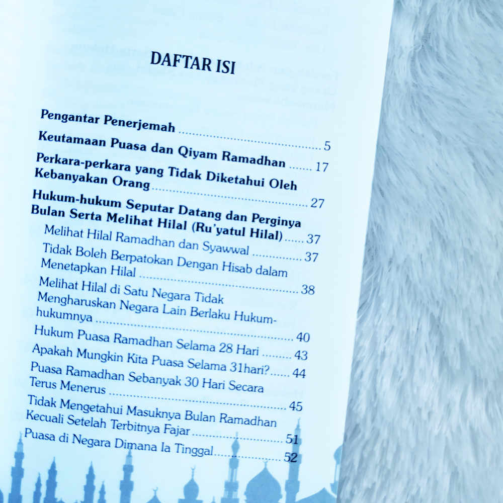 Persoalan-persoalan seperti itulah yang dikupas dalam buku ini. Singkat tetapi jelas, itulah yang dibutuhkan dan di buku inilah akan didapatkan. Apalagi jawaban-jawaban tersebut disampaikan oleh para syaikh yang tak diragukan lagi kefakihan dan kredibilitasnya dalam persoalan-persoalan Din. Anda termasuk orang yang peduli dengan ibadah-ibadah di bulan Ramadhan, buku ini layak menjadi pegangan Anda.