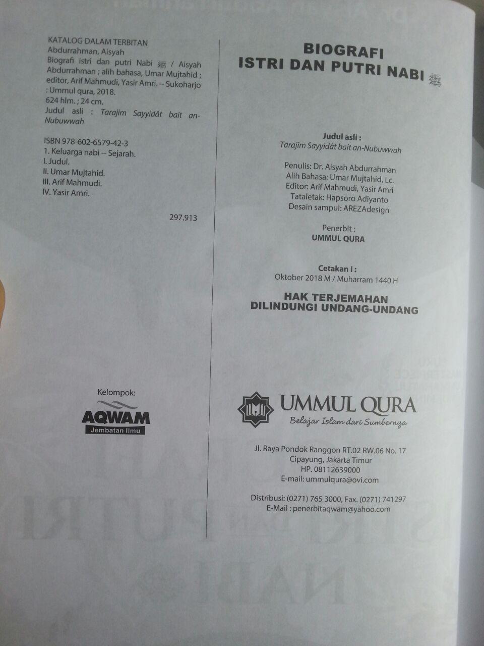 Buku Biografi Istri Dan Putri Nabi Masterpiece Ummahatul Mukminin