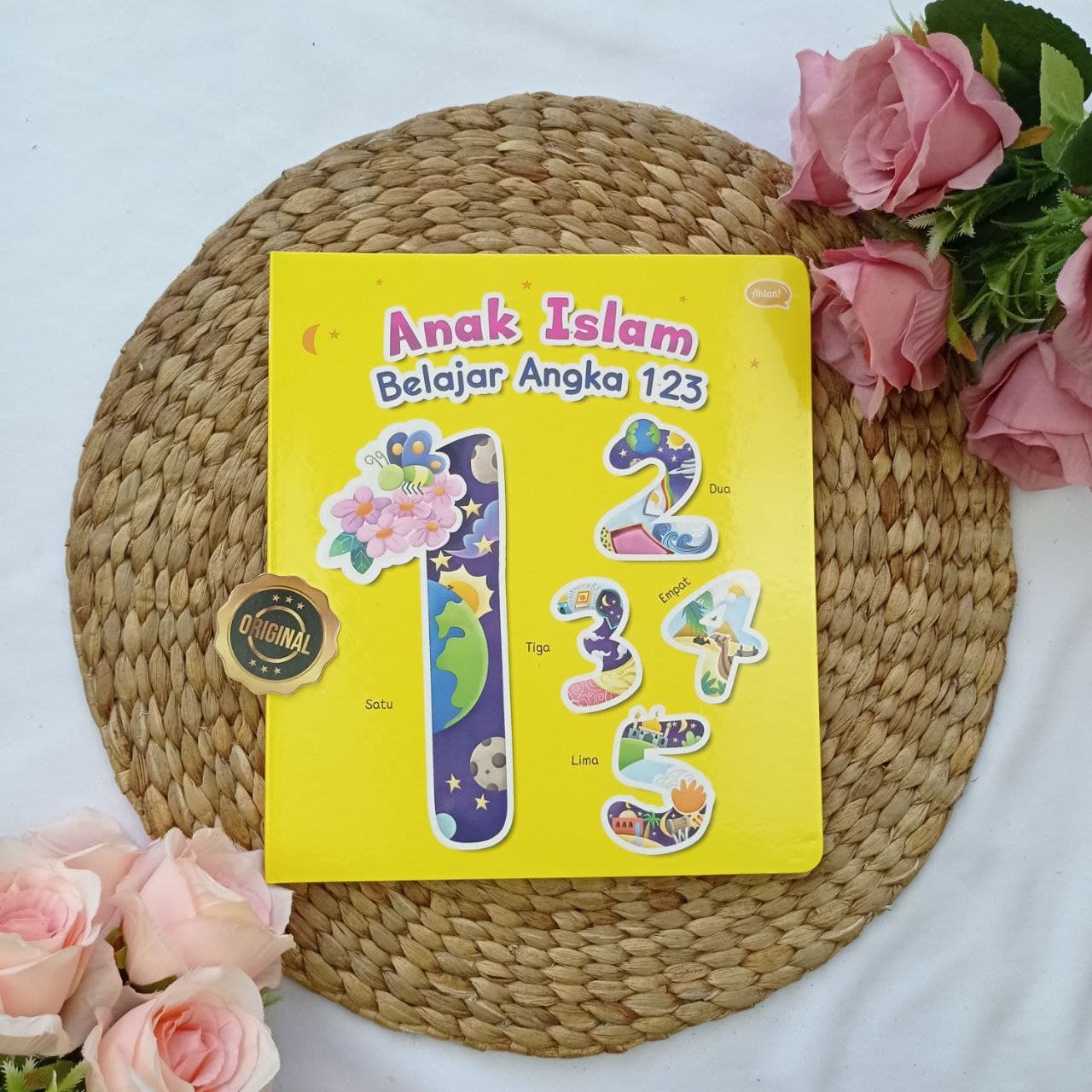 Anak Islam Belajar Angka 123 adalah boardbook dari Ahlan, yang tidak hanya mengenalkan angka dari simbol dan kata. Tetapi juga disertai membilang bendanya dengan menggunakan stiker.