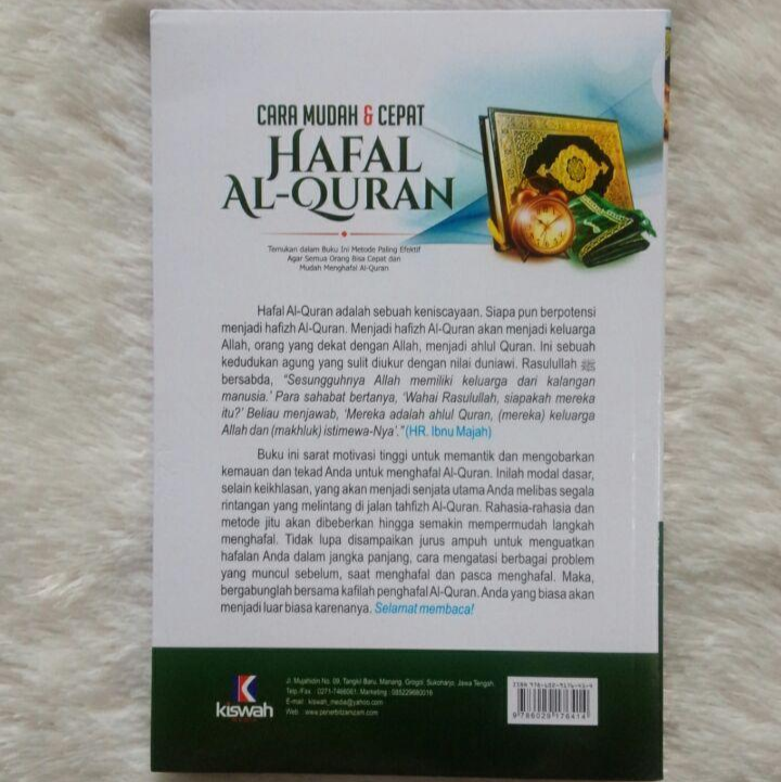 Buku ini membahas bagaimana salah satu metode untuk menghafal al-Qur’an al-Karim dengan mudah dan cepat. Salah satu cuplikan isinya: